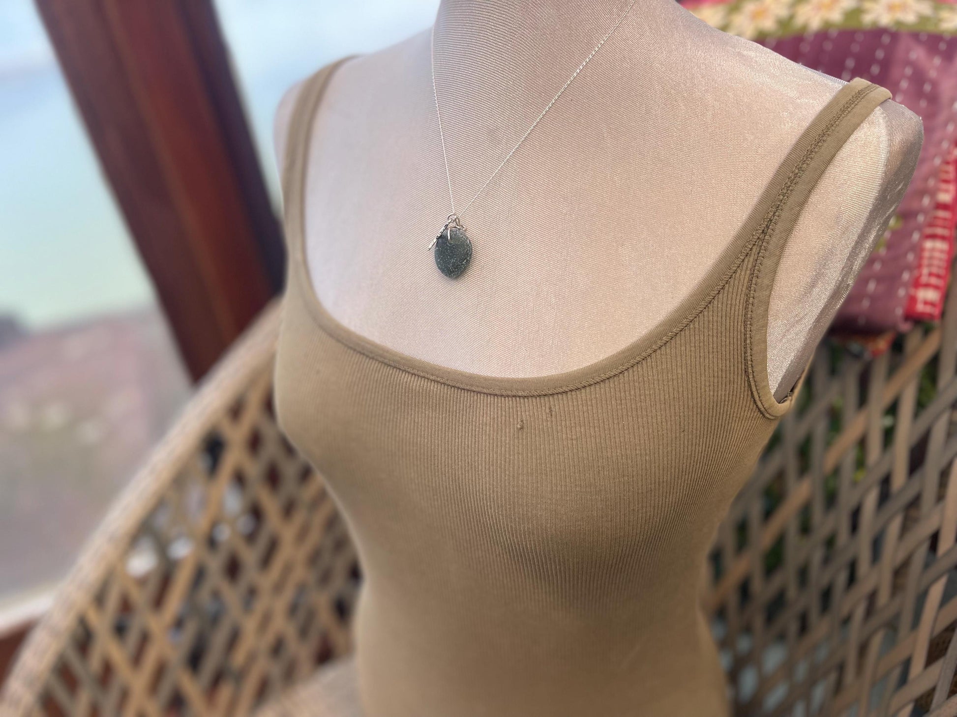 Beautiful recycled green sea glass necklace. Washed up on the beach in Cornwall, drilled by me and made into something new :)