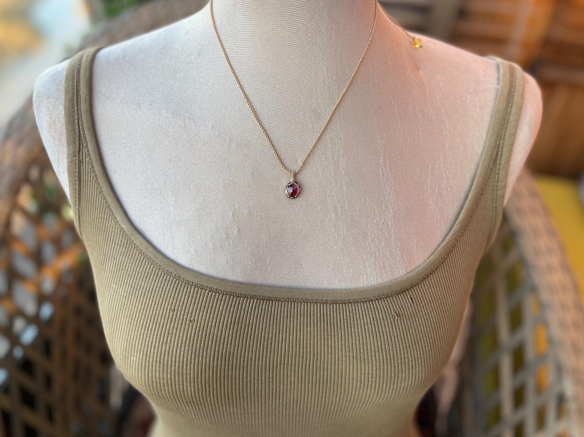 This is a beautiful and unique red garnet necklace, macrame wrapped and fully adjustable.
