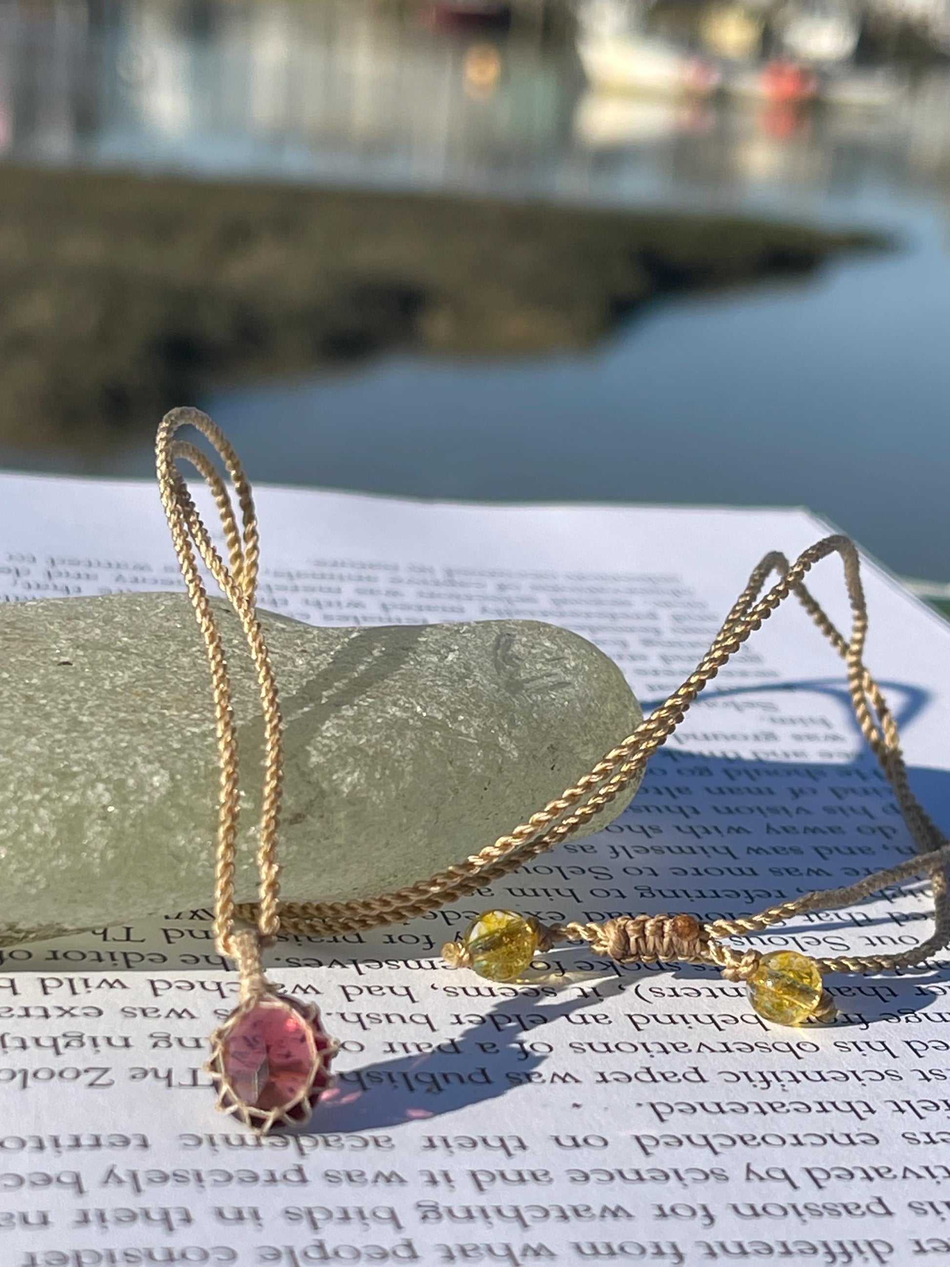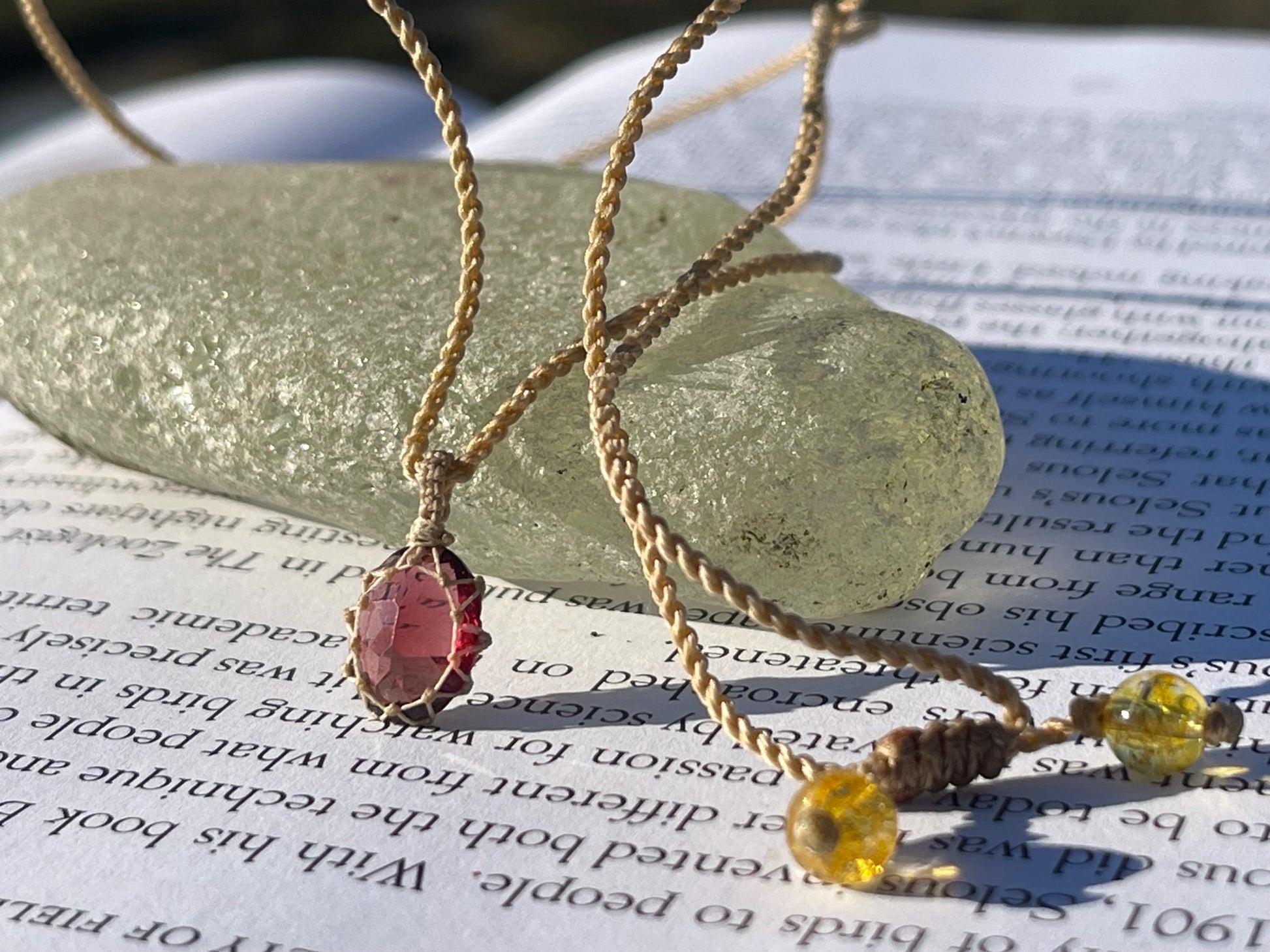 Stunning macrame garnet necklace on an adjustable cord. Handmade gemstone necklace, boho jewellery. Macrame jewellery. Unique necklace.
