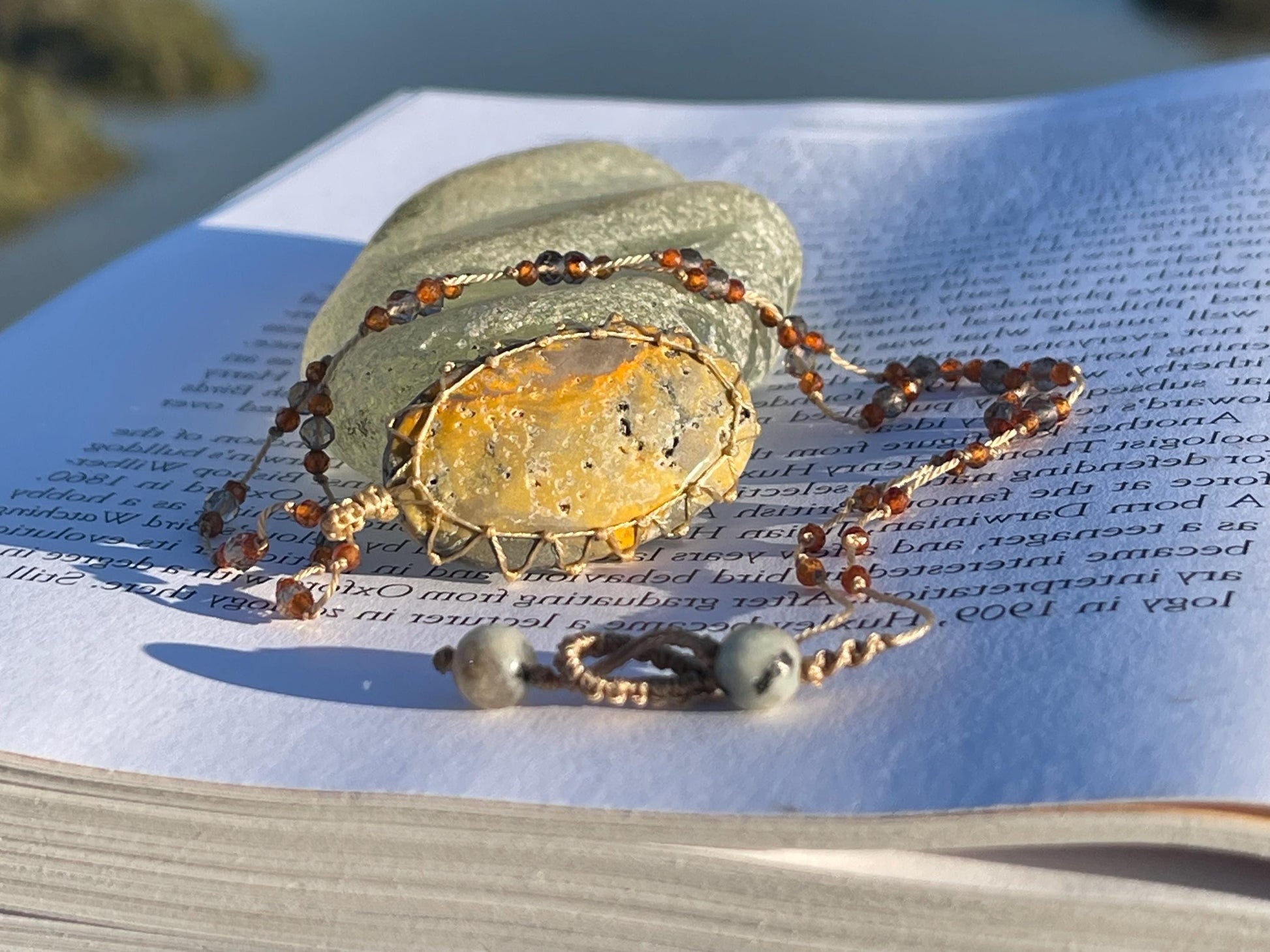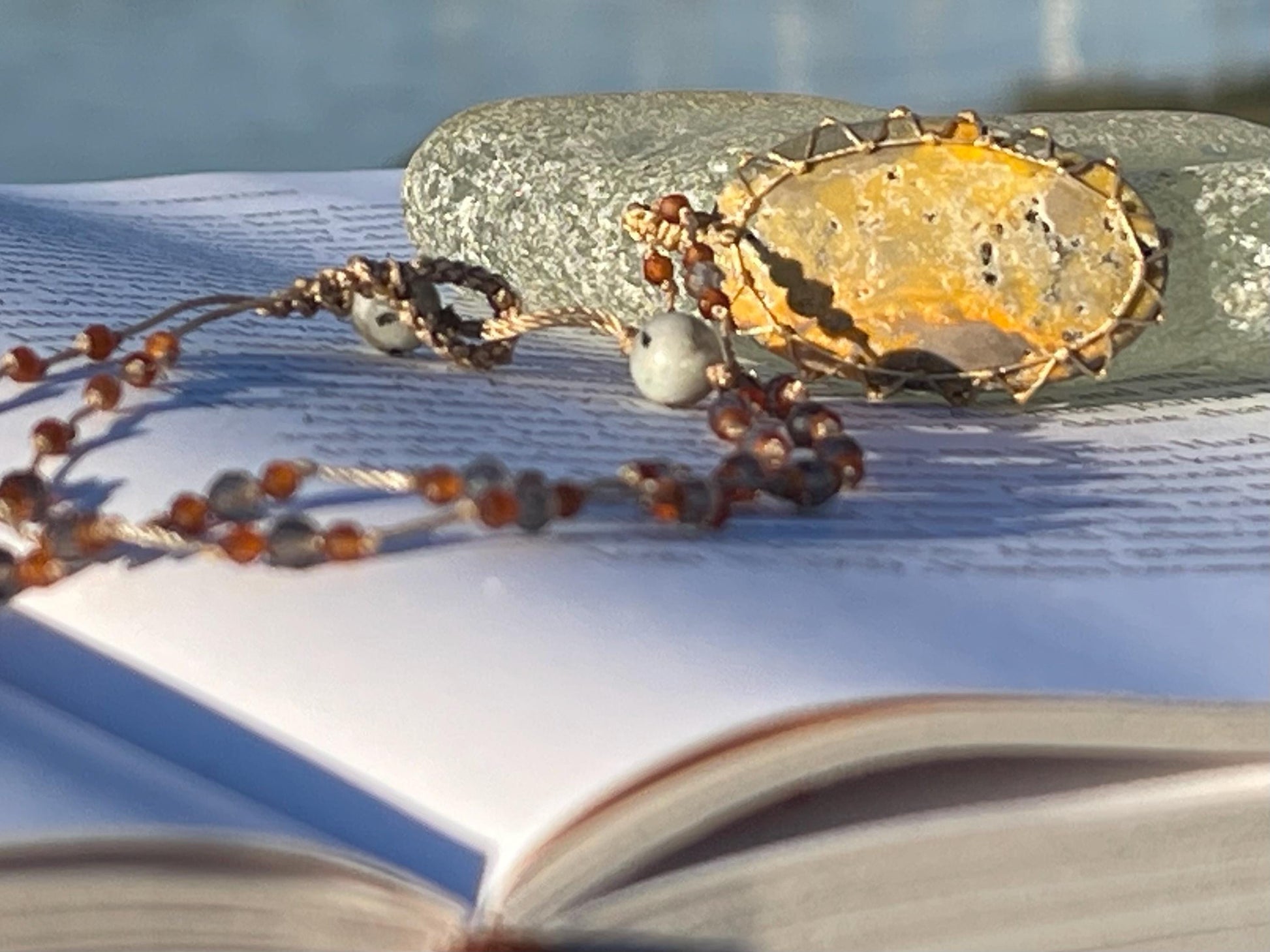 Stunning macrame yellow jasper necklace, jasper pendant, yellow gemstone, Handmade gemstone necklace, boho gift for her. Macrame jewellery.