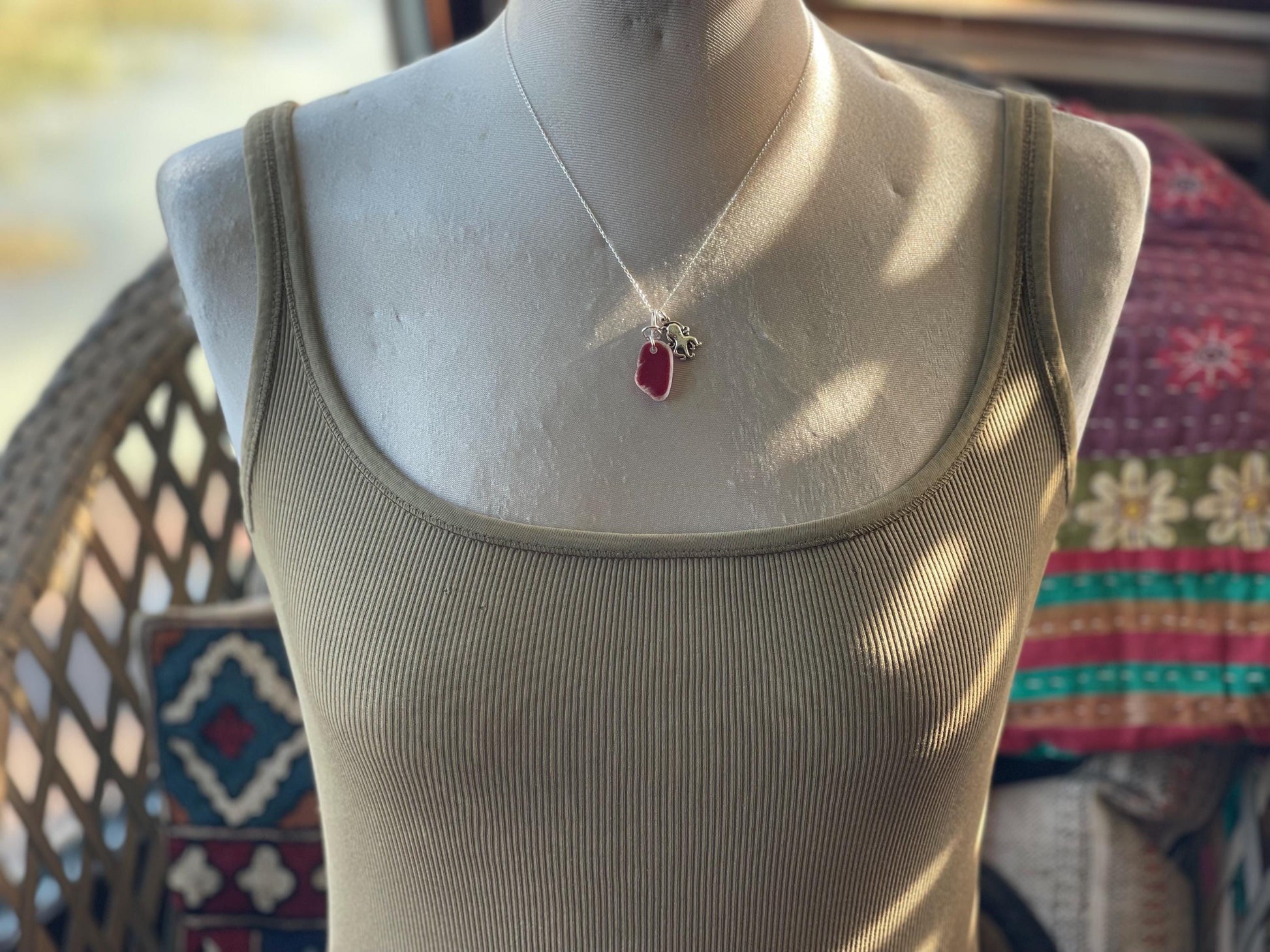 Beautiful recycled very rare red sea glass necklace. Washed up on the beach in Cornwall, drilled by me and made into something new :)
