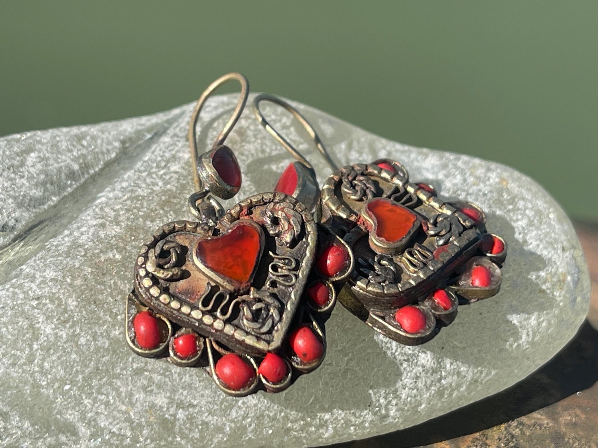 Gypsy jewellery, vintage heart earrings, heart jewellery, ethical jewellery, gypsy earrings, romantic gifts, eco friendly jewellery