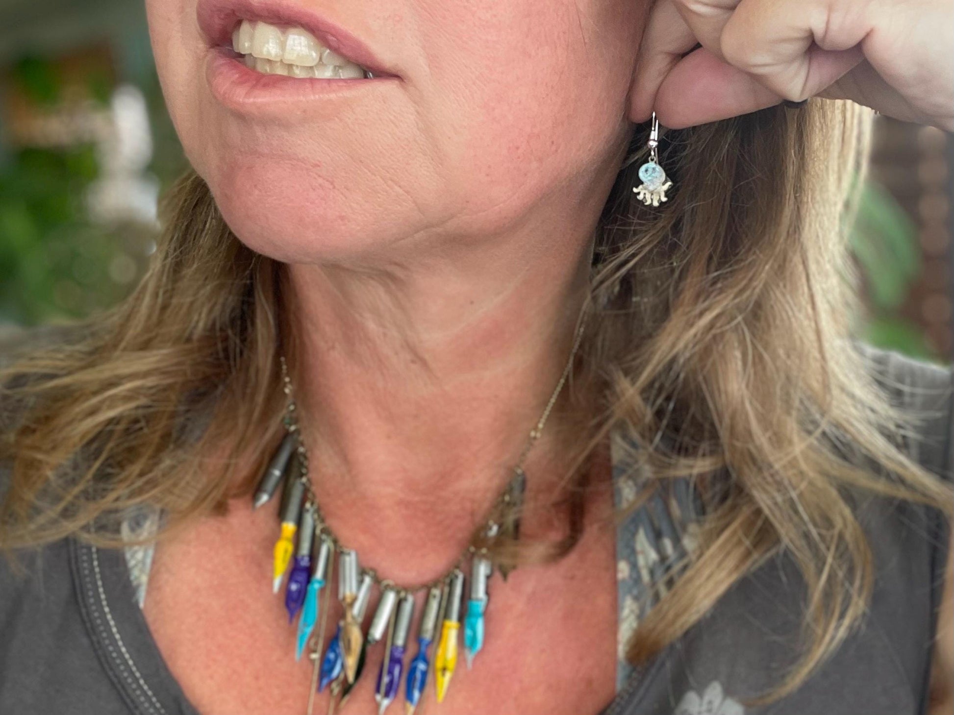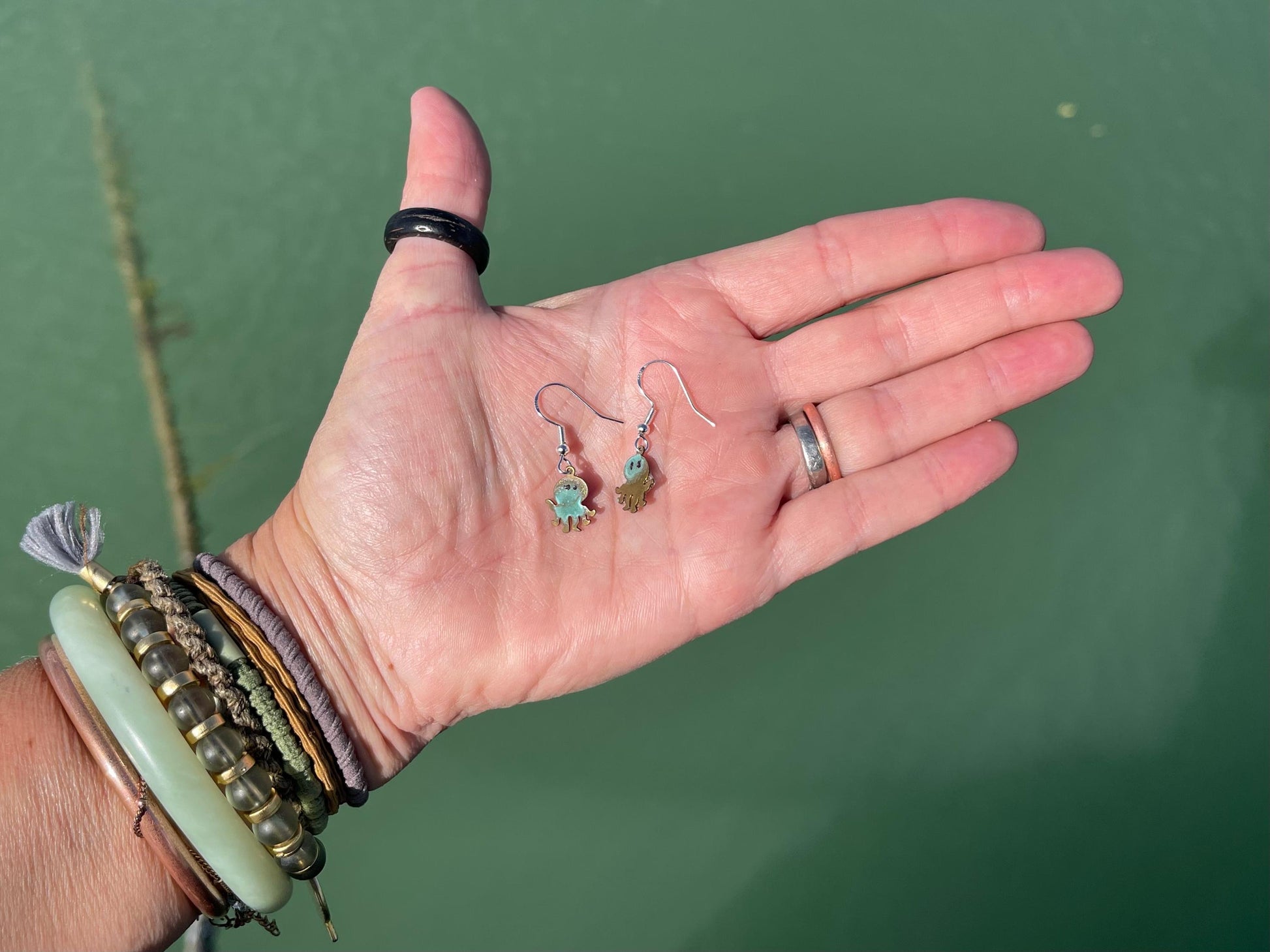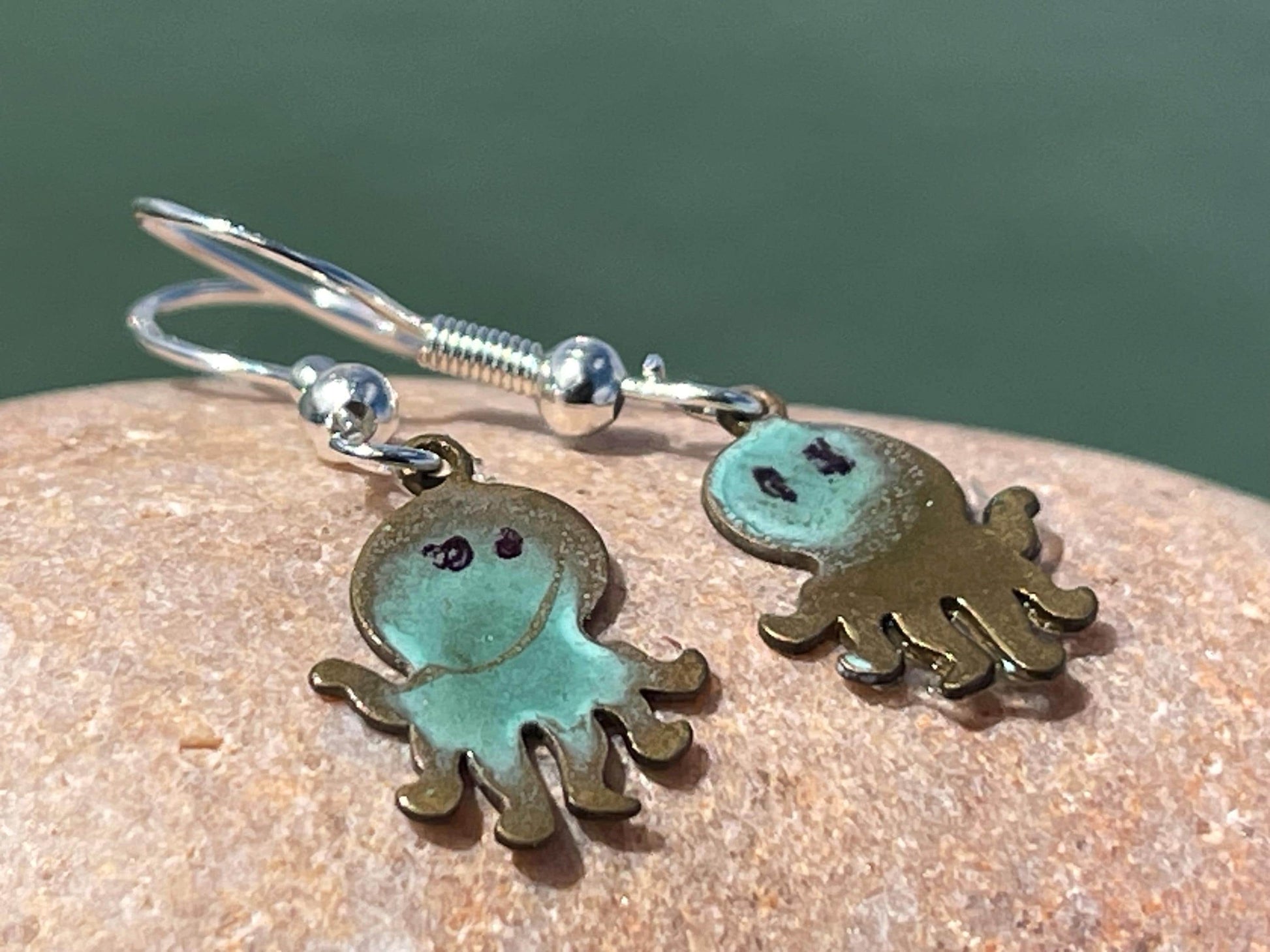 Handmade octopus earrings. Rustic earrings, unusual earrings, unusual gift for her, small blue earrings, boho earrings. Seaside.