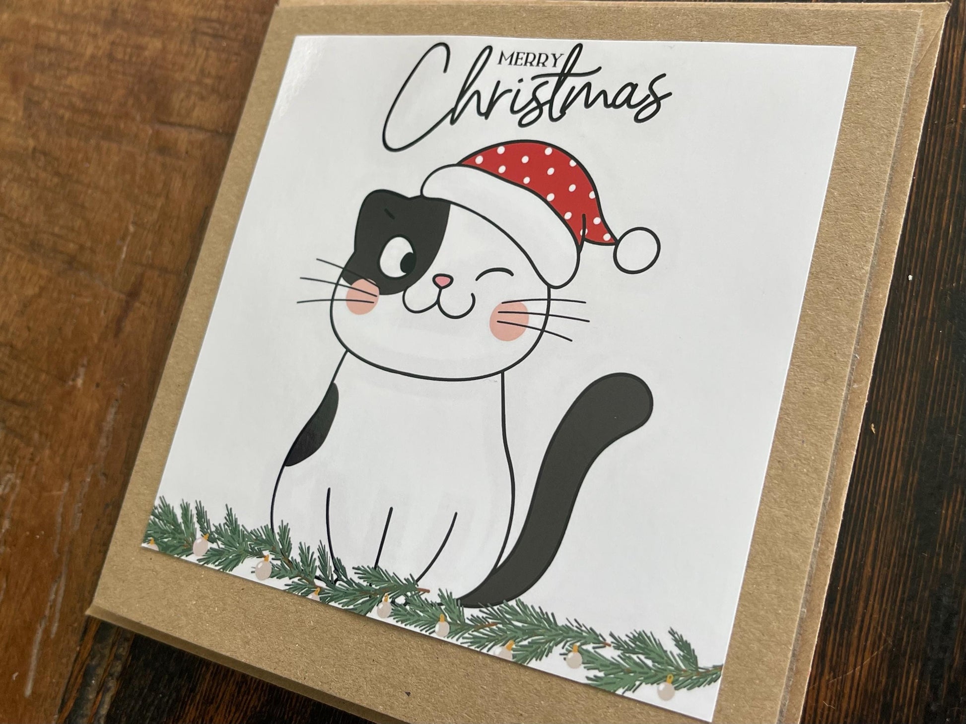 Recycled Christmas card. Christmas cat card, cat christmas card. Eco friendly Christmas card. Xmas cat card, ethical Christmas card