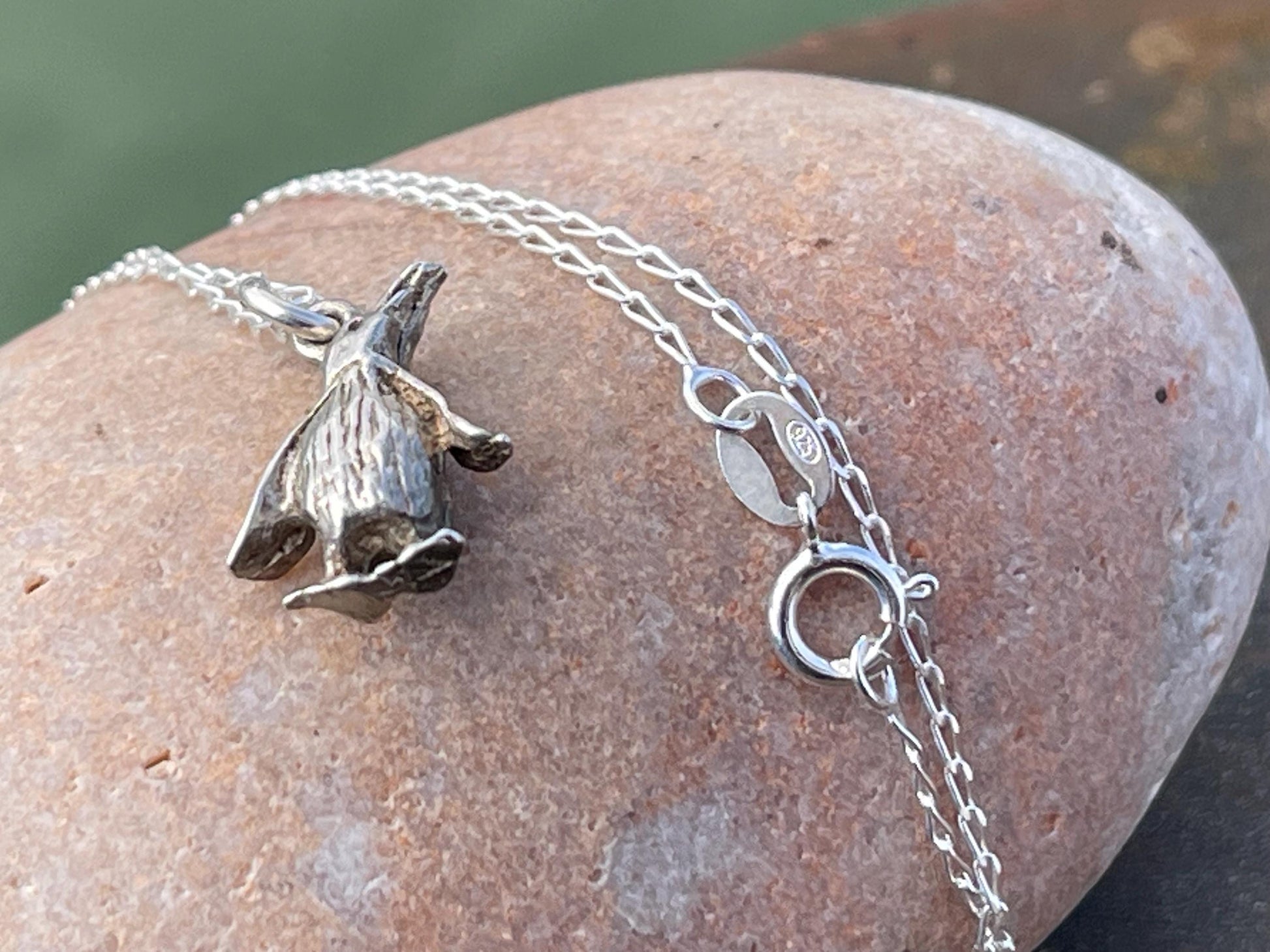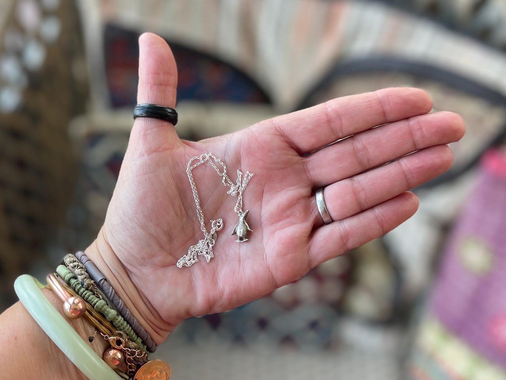 Recycled sterling silver penguin necklace. Unique jewellery, festive necklace, penguin jewellery, penguin pendant. Penguin jewellery.