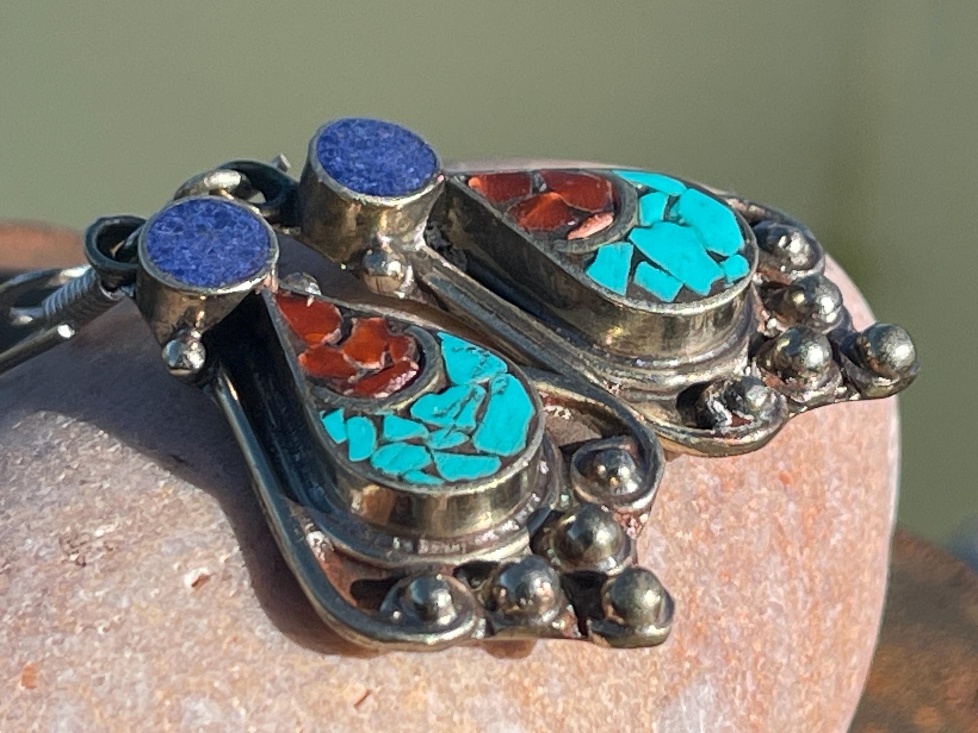 Vintage turquoise & lapis earrings, turquoise jewellery, ethical jewellery, gypsy earrings. Eco friendly jewellery. Ethical jewellery.