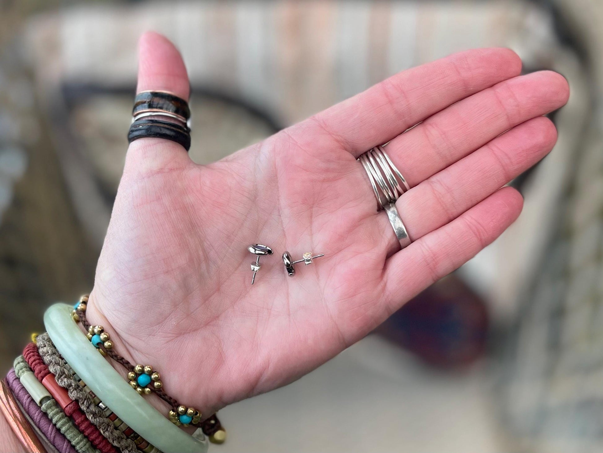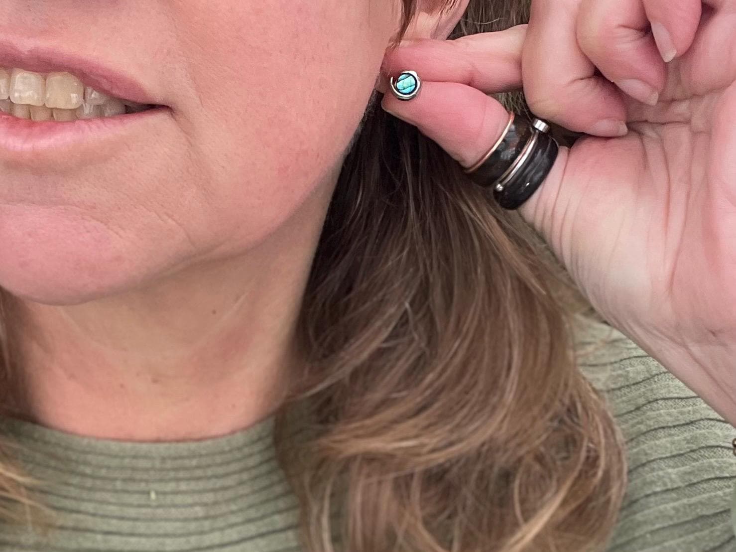 Vintage abalone stud earrings on sterling silver. They look absulutely stunning in the sunshine.
