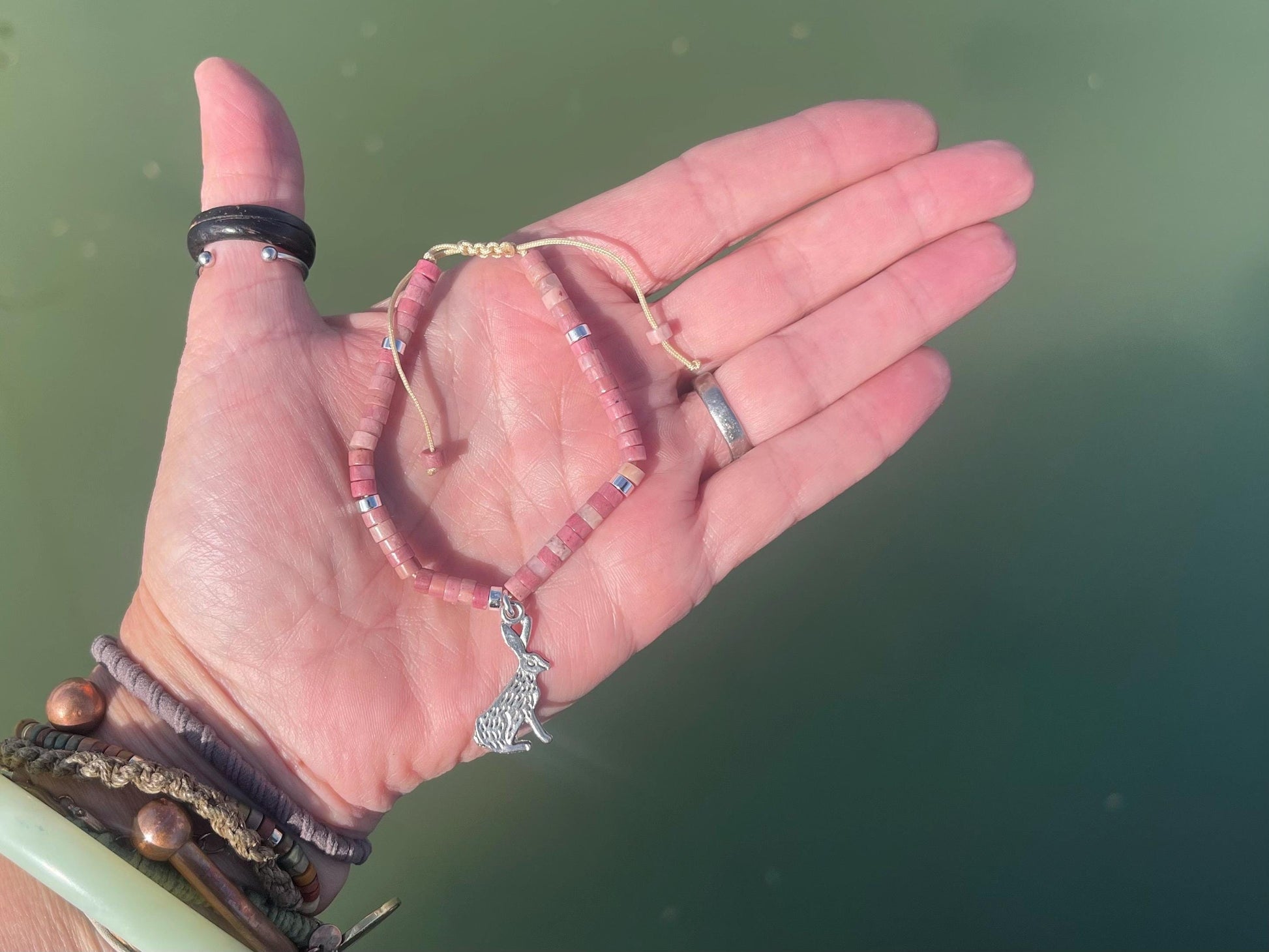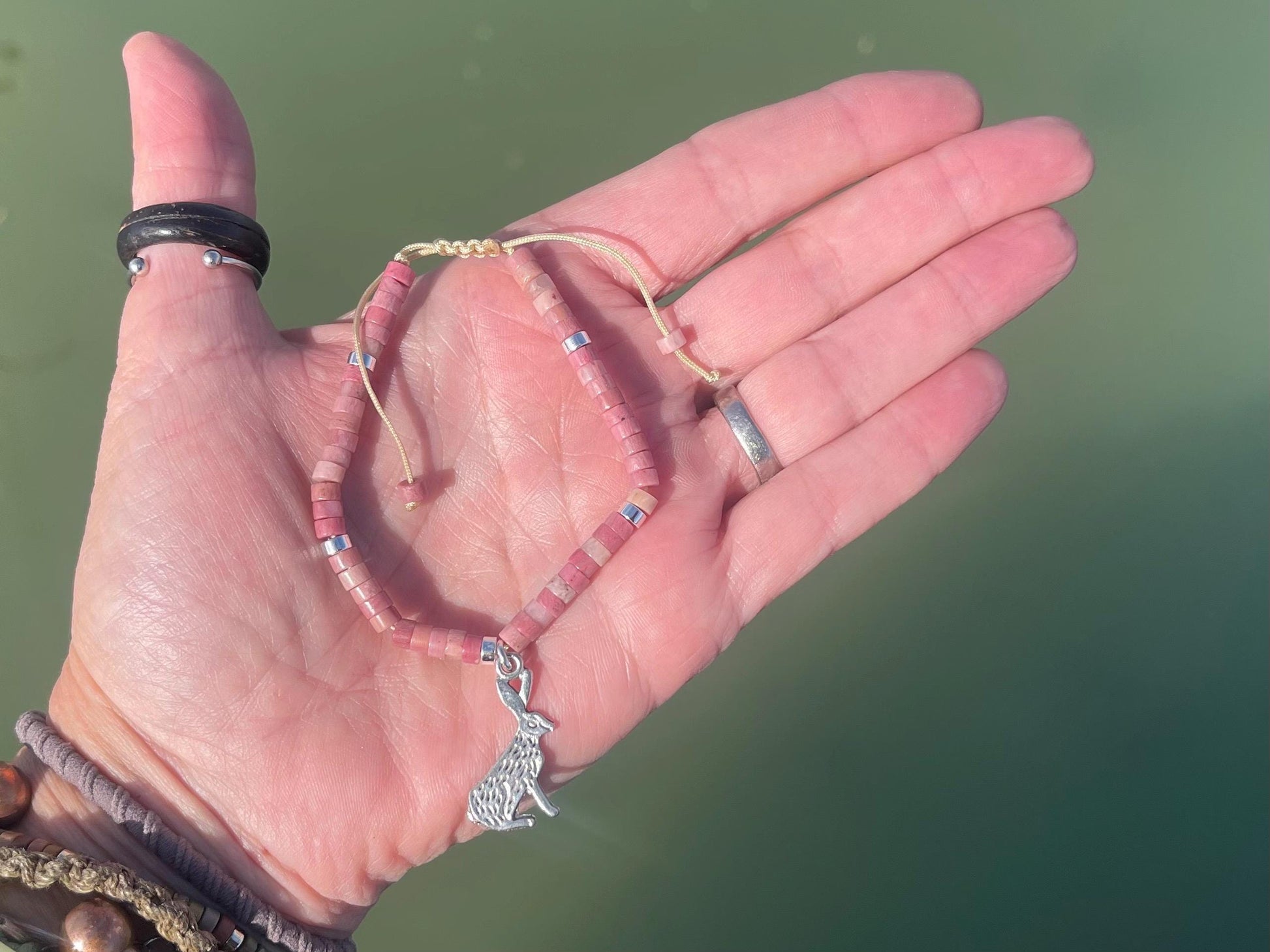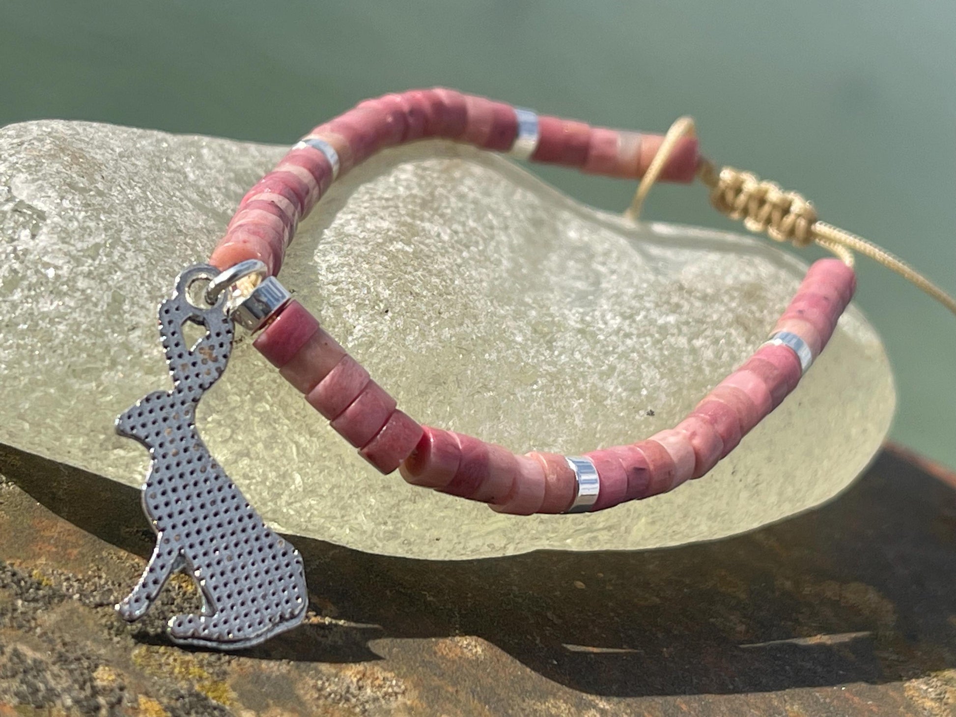 Adjustable rhodonite pink gemstone bracelet, handmade gift for him or her. Ethical jewellery, unique jewellery. Hare bracelet.