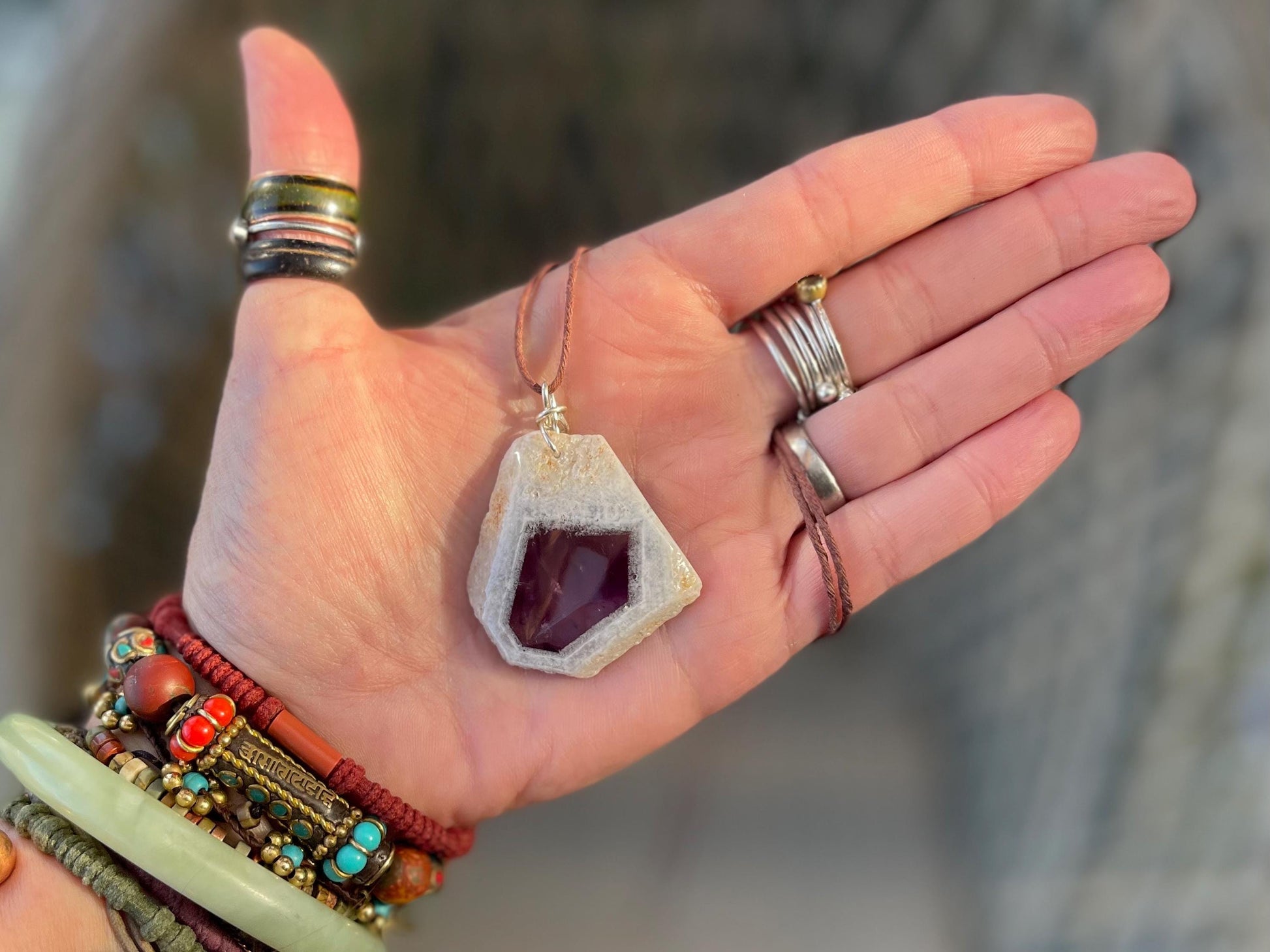 Amethyst pendant, amethyst necklace, amethyst jewellery, gift for him, boho handmade necklace, romantic gift for her, ethical jewellery