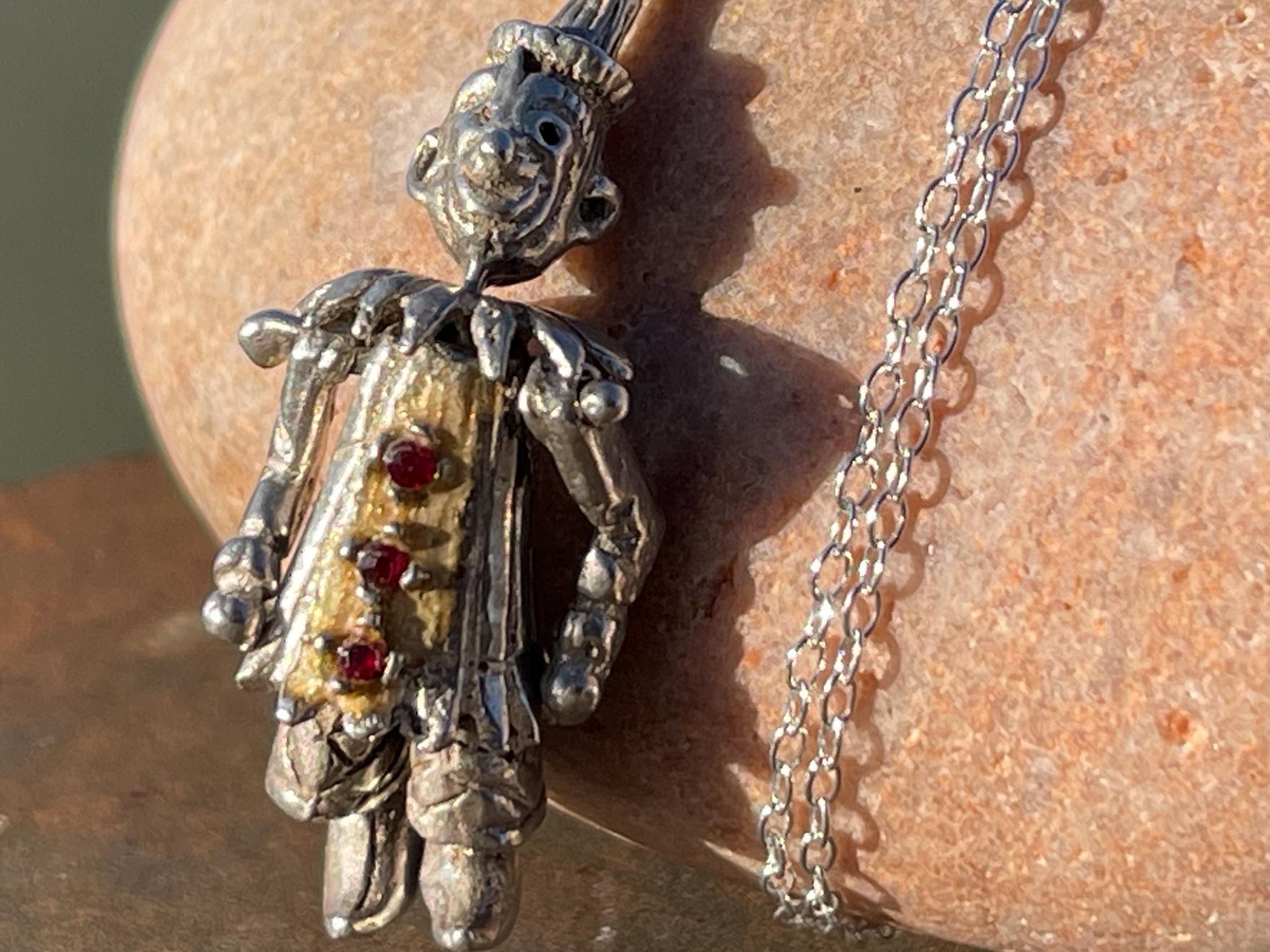 Articulated clown necklace, clown jewellery. Ethical jewellery. Eco friendly gift for her, vintage necklace, articulated necklace