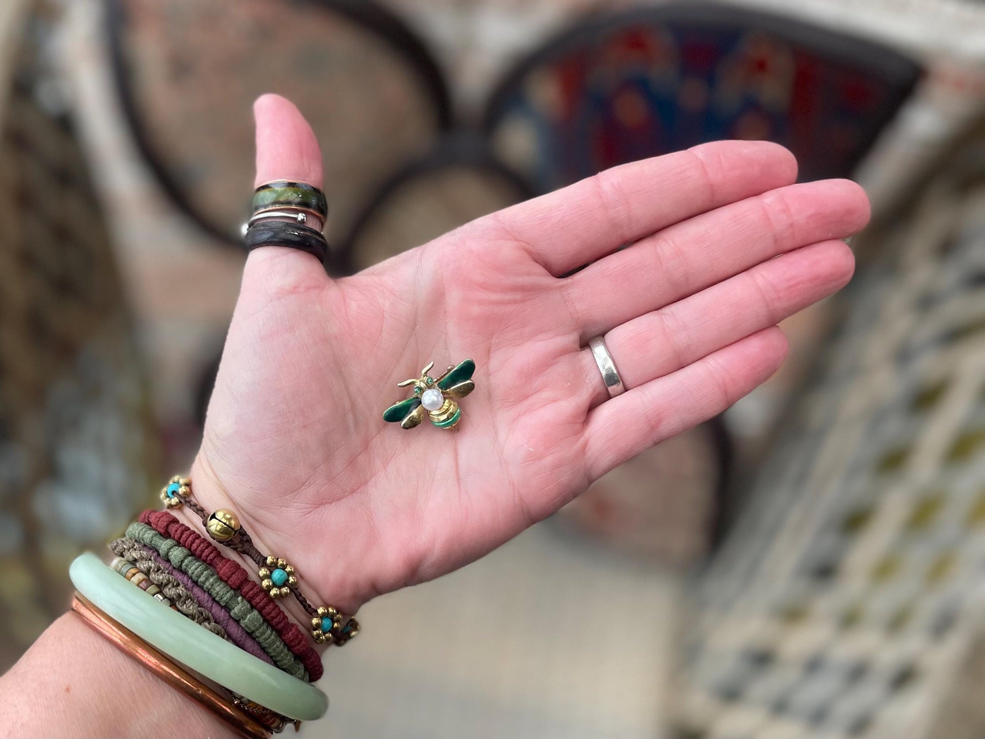 Bee brooch, vintage brooch, vintage jewellery, retro jewellery, eco friendly gift for her, ethical jewellery, bee pin. Insect brooch.