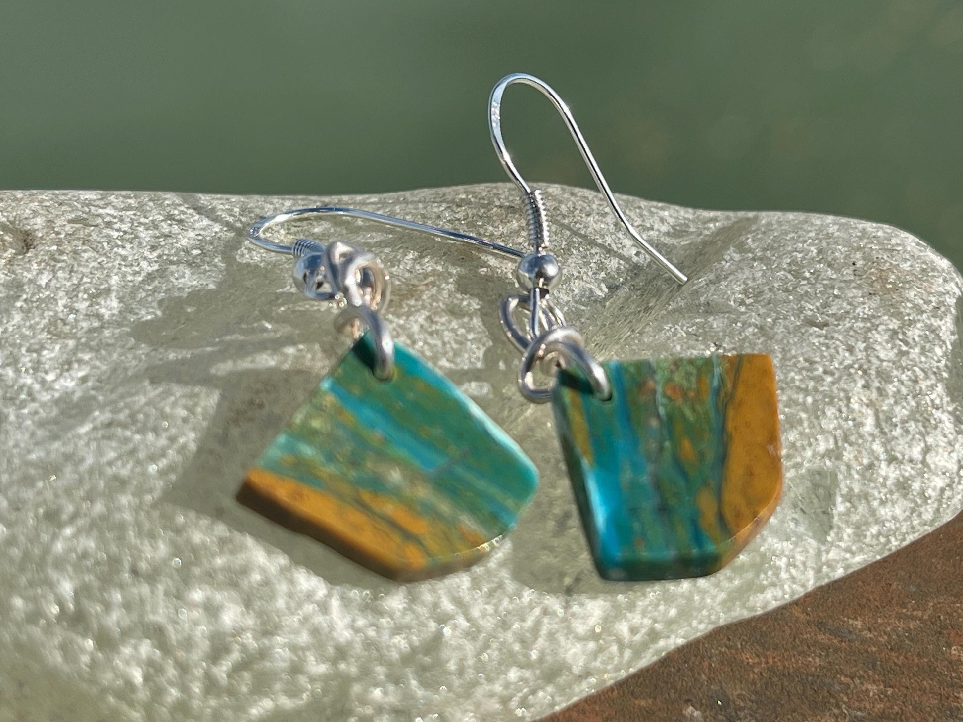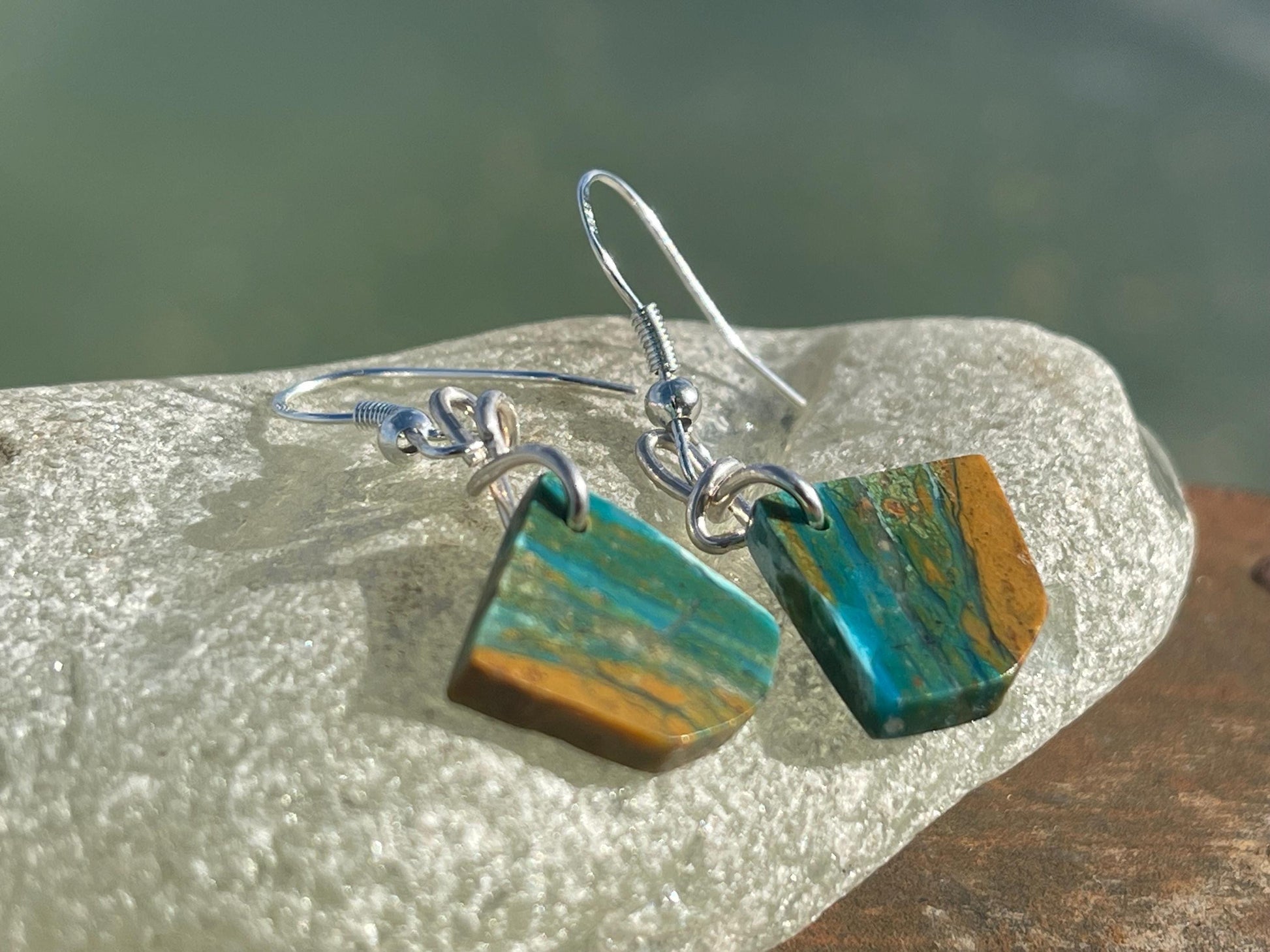 Blue opal nugget earrings on recycled sterling silver. Handmade unusual earrings. Boho earrings. Uniqie jewellery.