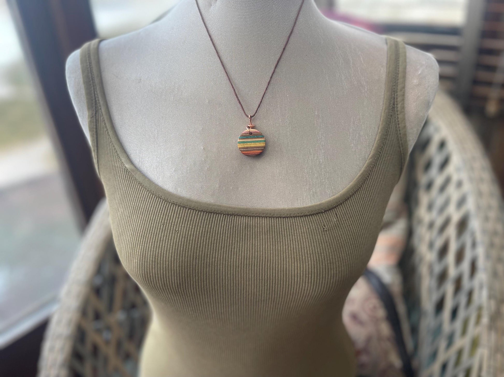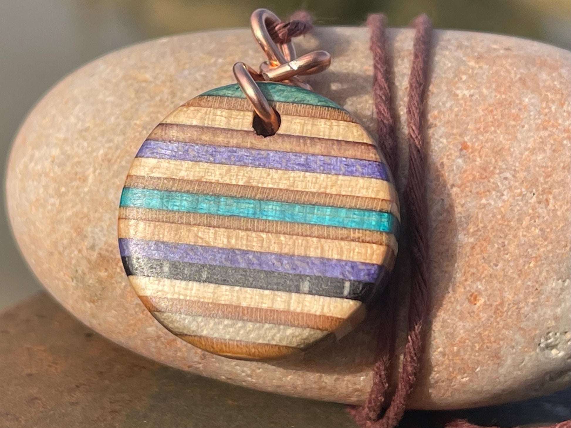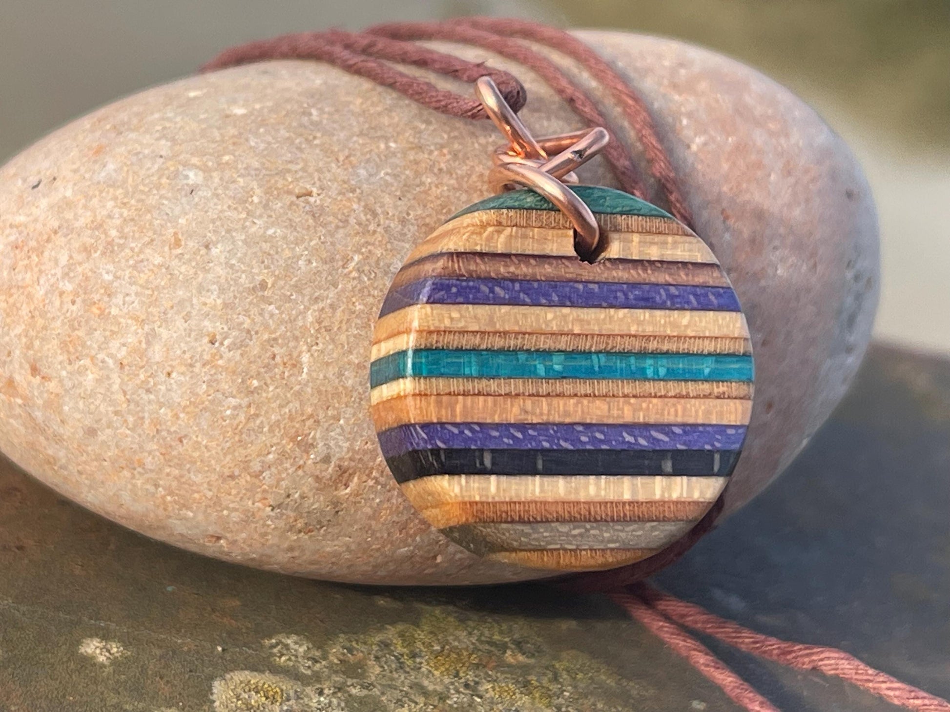 Pendants made from broken old skateboards :) Hung on copper that I stripped down from waste electrical cables. Blue or purple stripes (aongside other colours).
