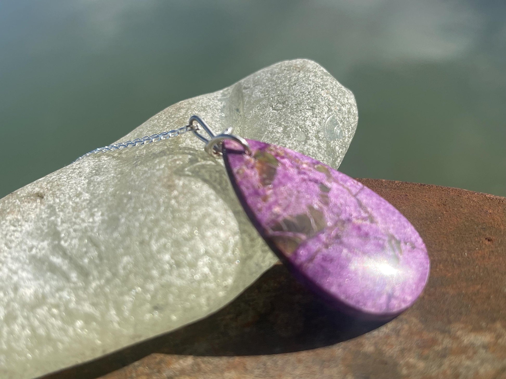 Charoite necklace, purple necklace. Handmade necklace, charoite jewellery, gift for her, unusual necklace, purple gemstone, unique jewellery