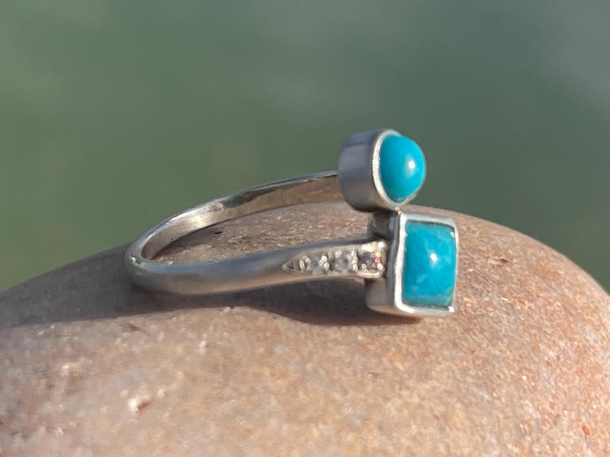 This is an ethically sourced turquoise ring on sterling silver. It is a size 6.5 US, M.5 UK. Please ensure the size is suitable before purchase and contact me if any queries :)