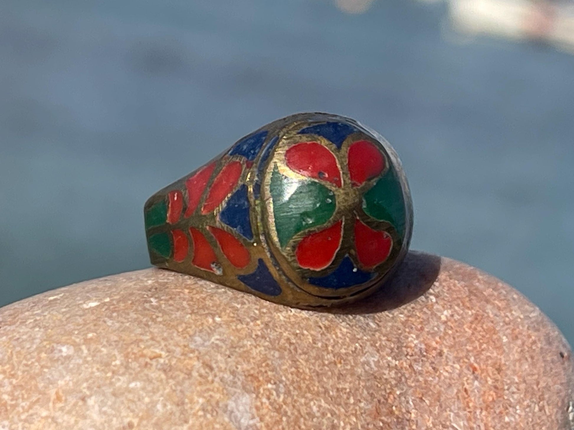 Fabulous festive red and green ring, boho vintage jewellery, ethical jewellery, gypsy ring. Gypsy jewellery. Christmas ring.