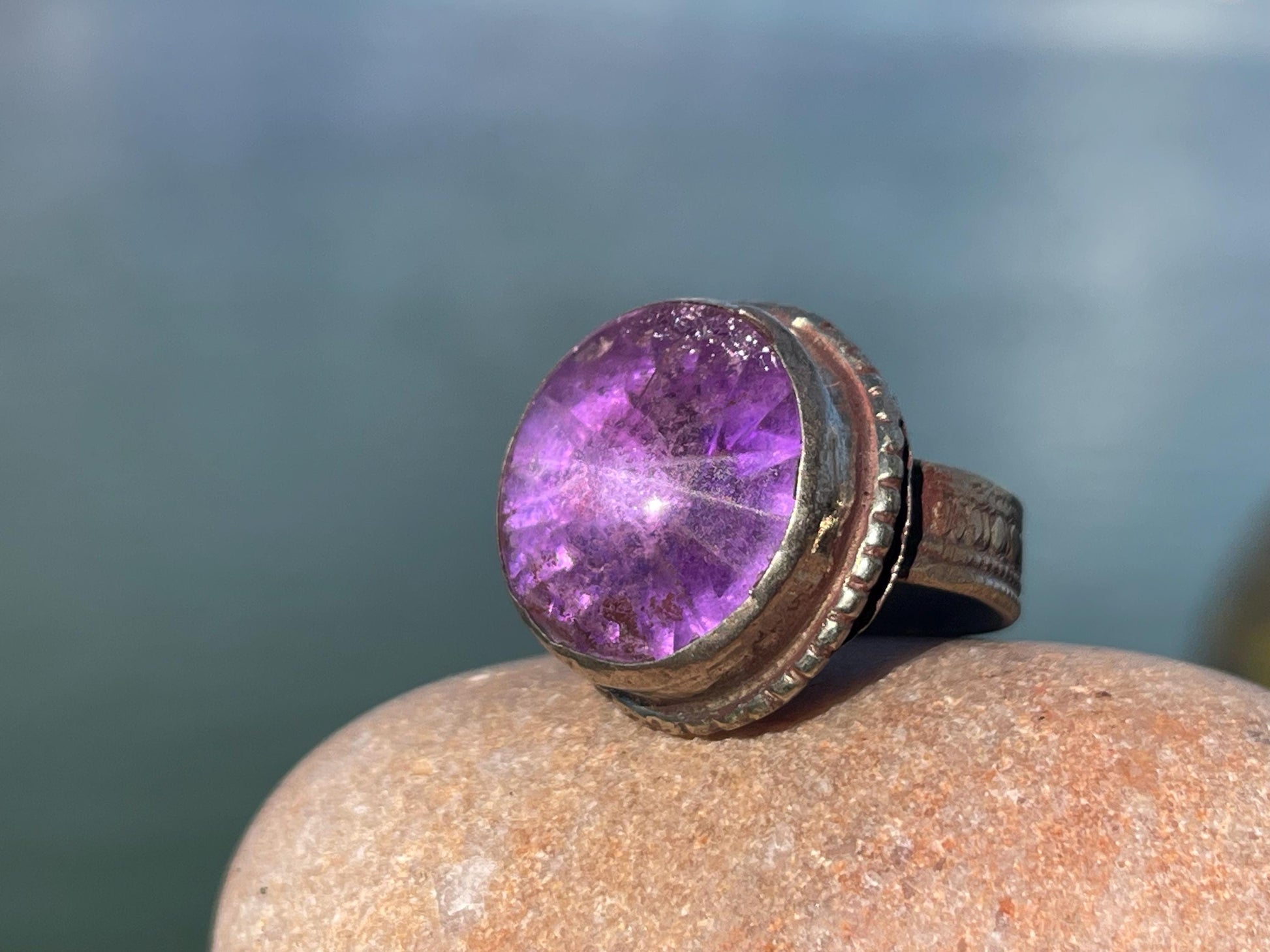 Fabulous purple vintage ring, large purple ring, boho vintage jewellery, ethical jewellery, gypsy ring. Gypsy jewellery, statement jewellery