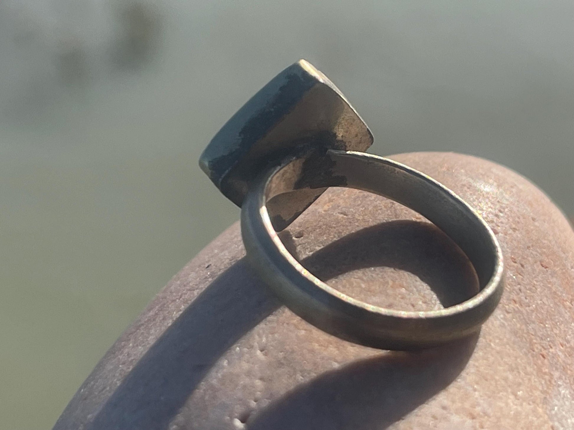 The ring was hand crafted and traditionally made in Afghanistan and surrounding countries (Turkmen tribal craftsmanship). I believe the stone to be a carnelian gemstone.