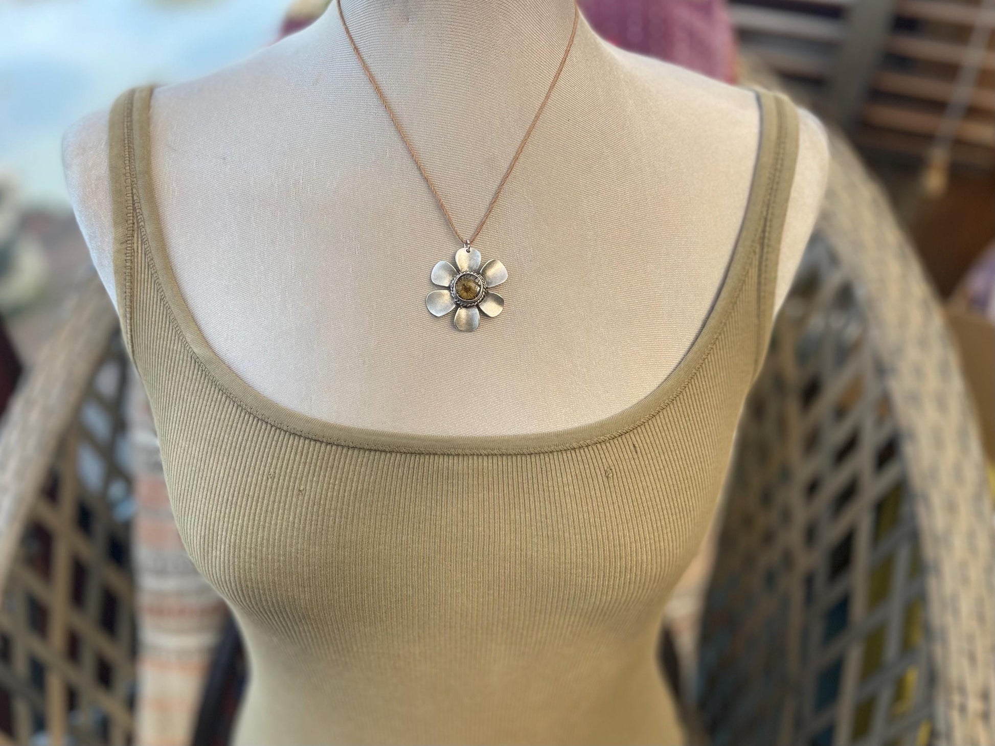 Flower necklace, ethical jewellery, daisy necklace, handmade necklace boho jewellery, gift for her, flower pendant, gift for gardener