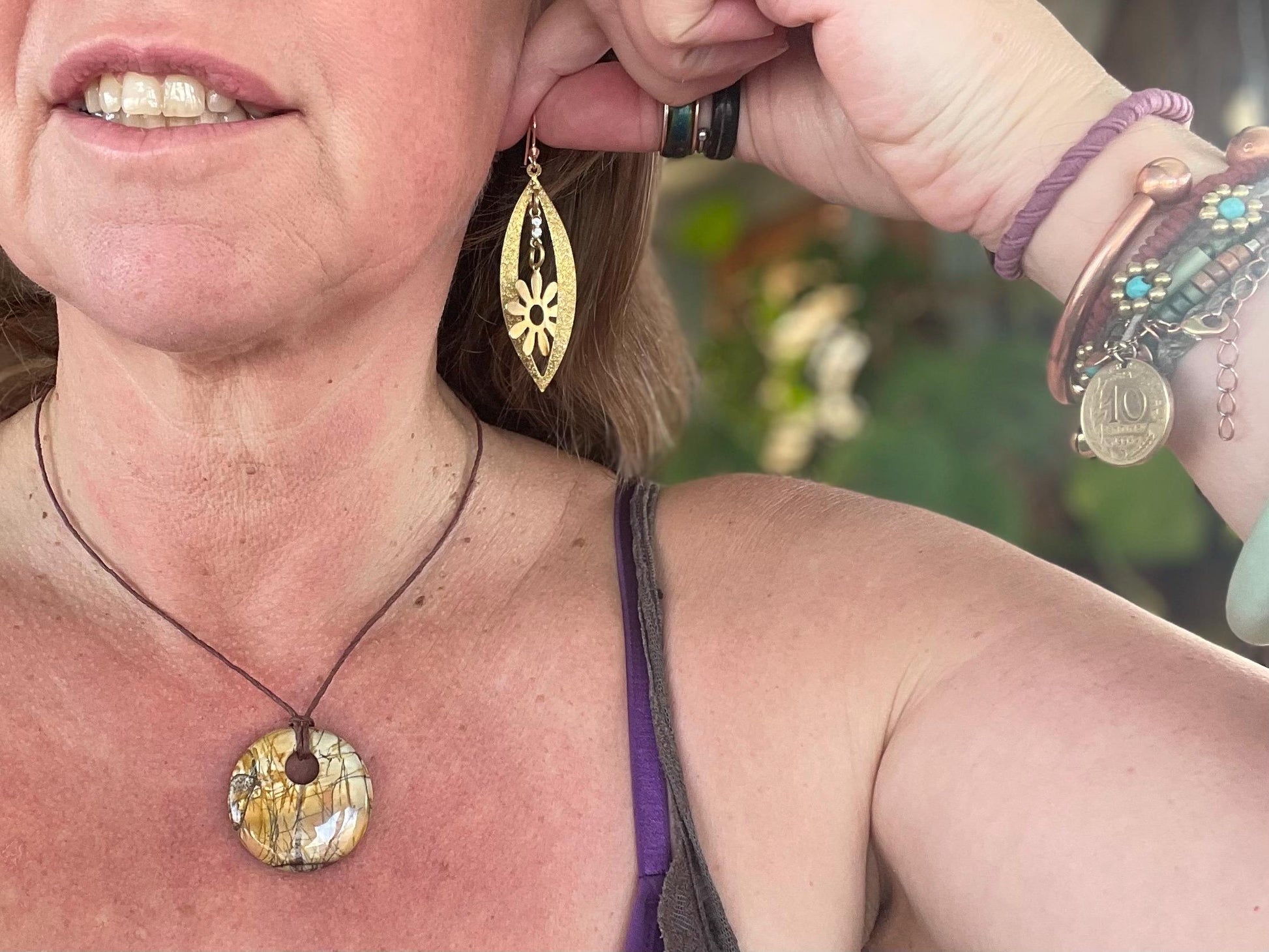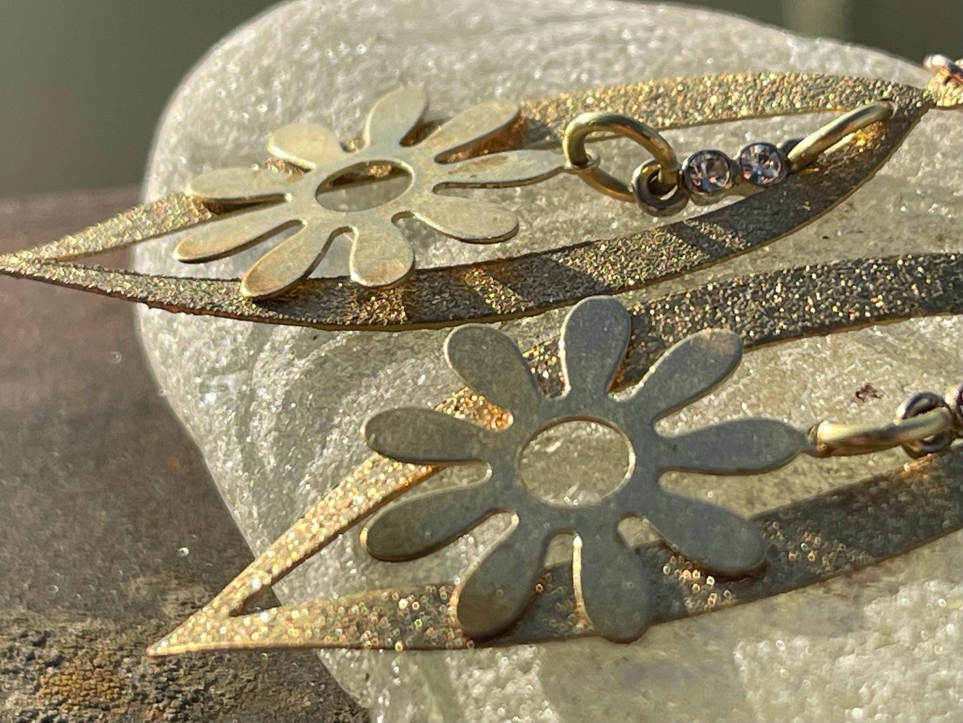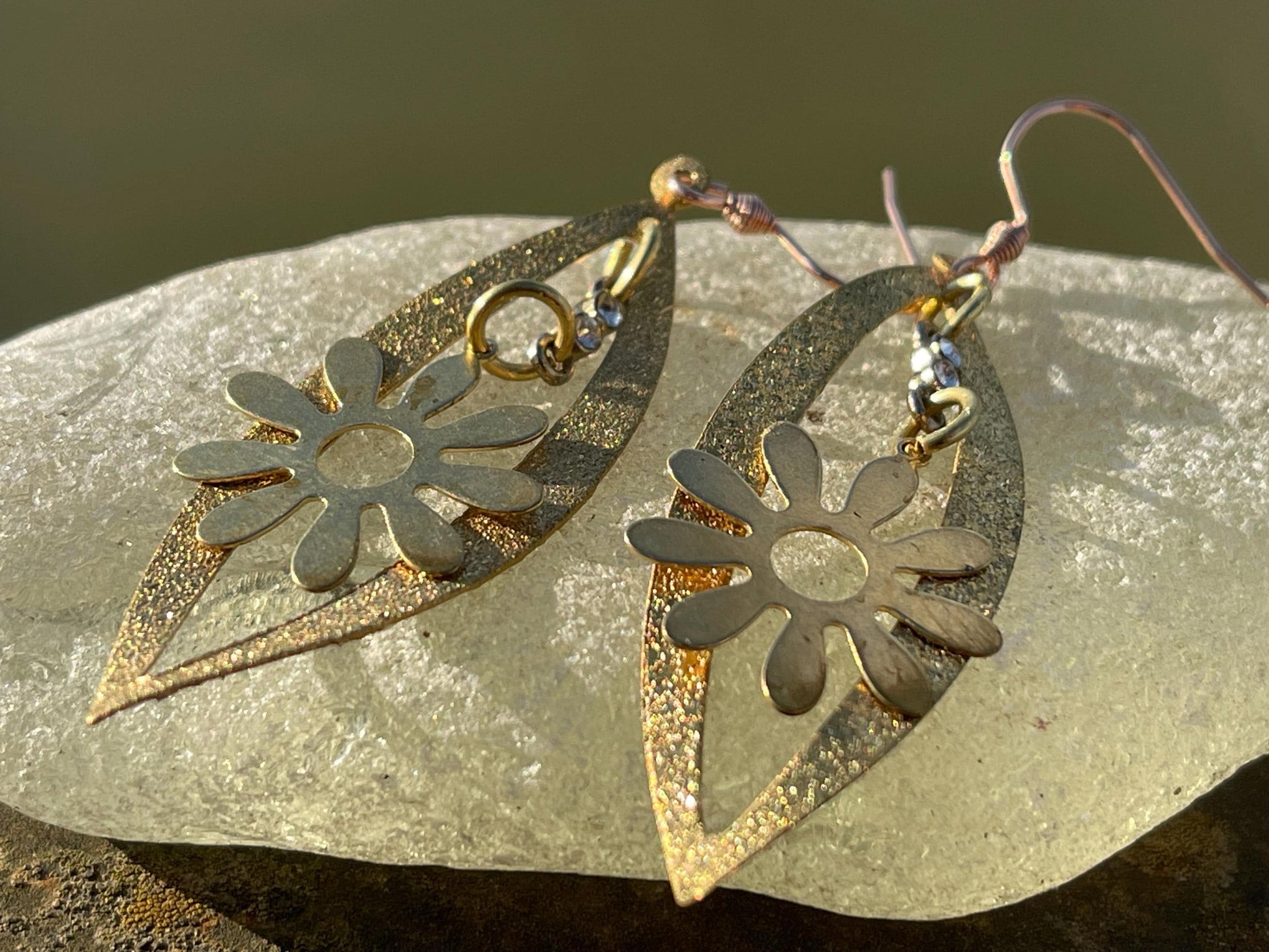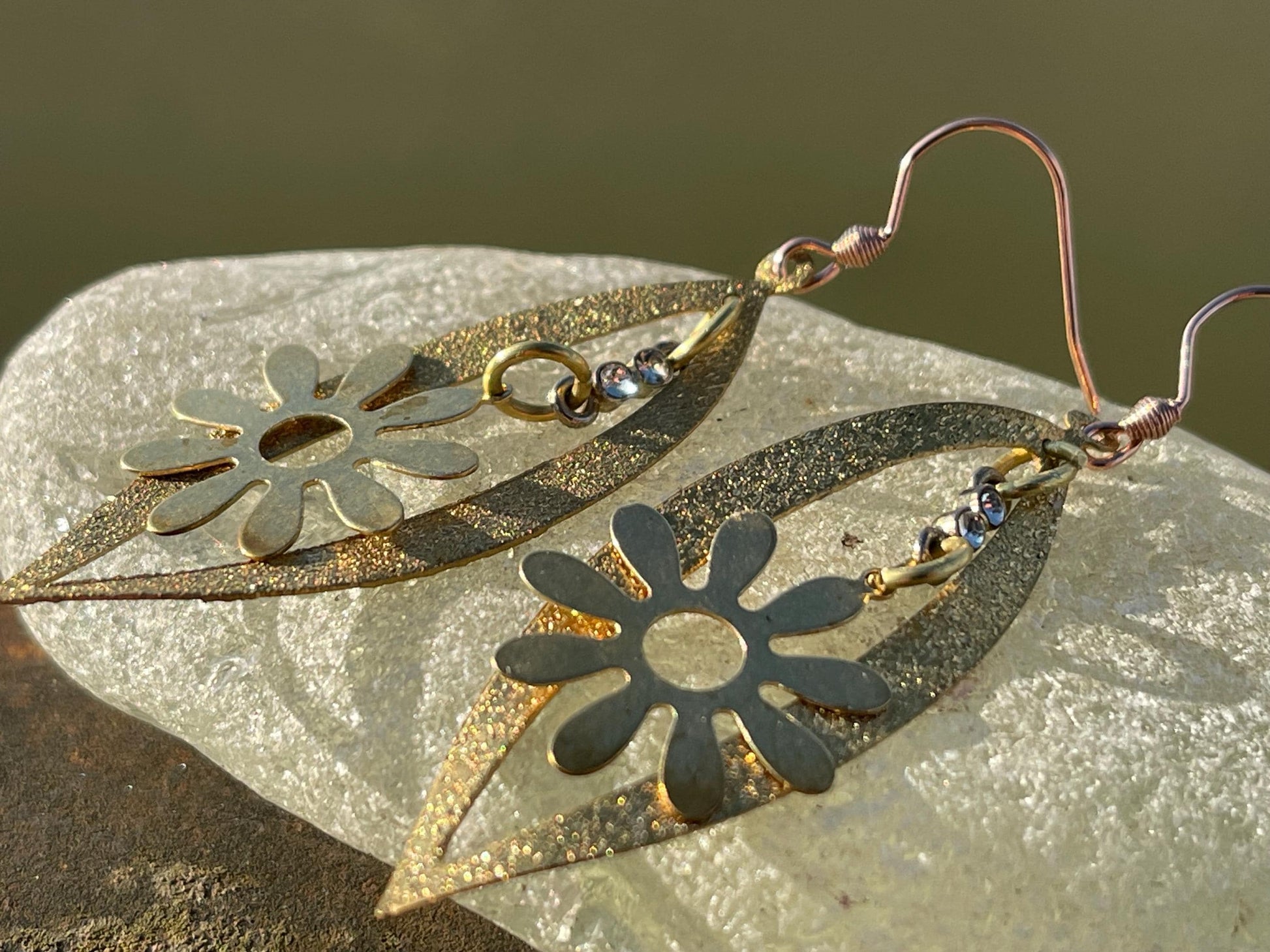 Beautiful earrings made from brass and hung on sterling silver plated with rose gold.
