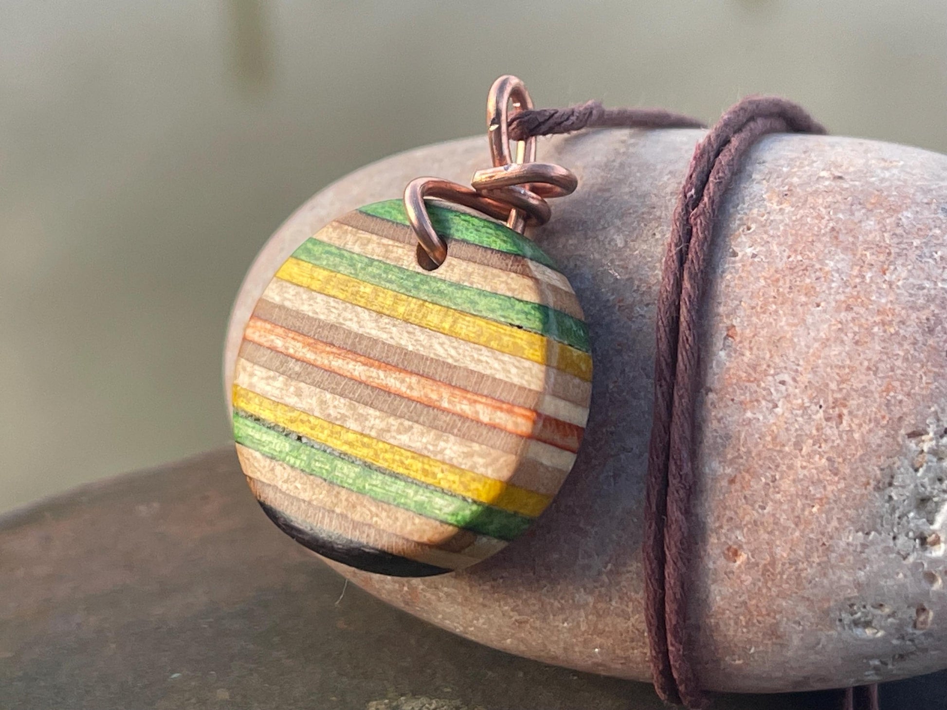 GREEN Handmade pendant made from old skateboards. Skateboard necklace. Unique gifts for men. Sustainable jewellery. Eco friendly jewellery.