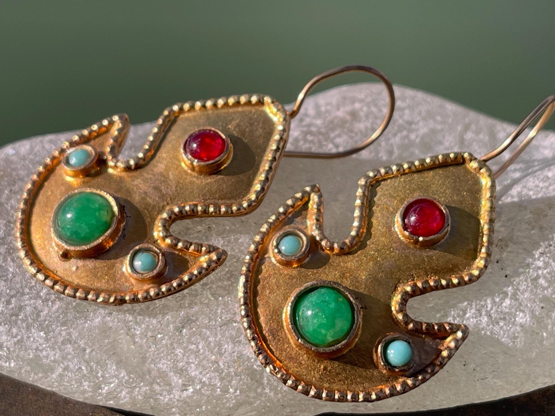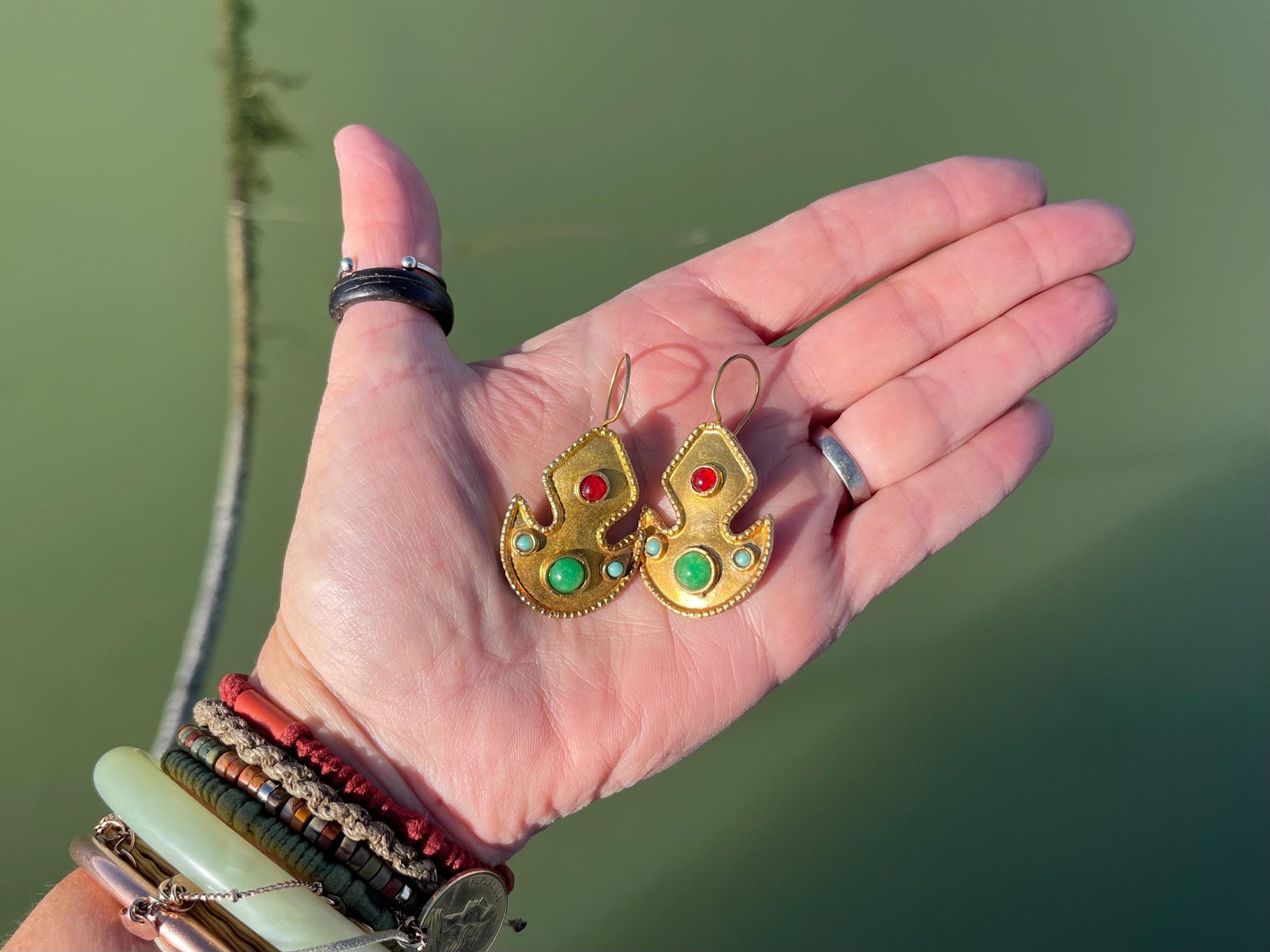 Gypsy jewellery, gold vintage earrings, red jewellery, ethical jewellery, gypsy earrings, romantic gifts, eco friendly jewellery