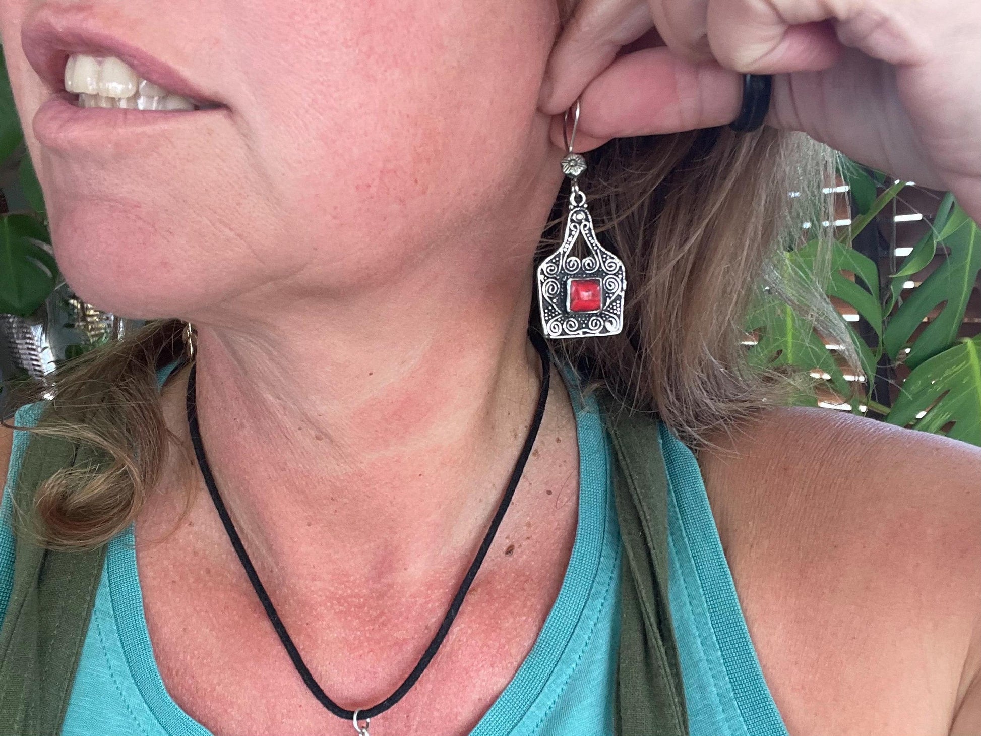 Gypsy jewellery, vintage earrings, red jewellery, ethical jewellery, gypsy earrings, romantic gifts, eco friendly jewellery