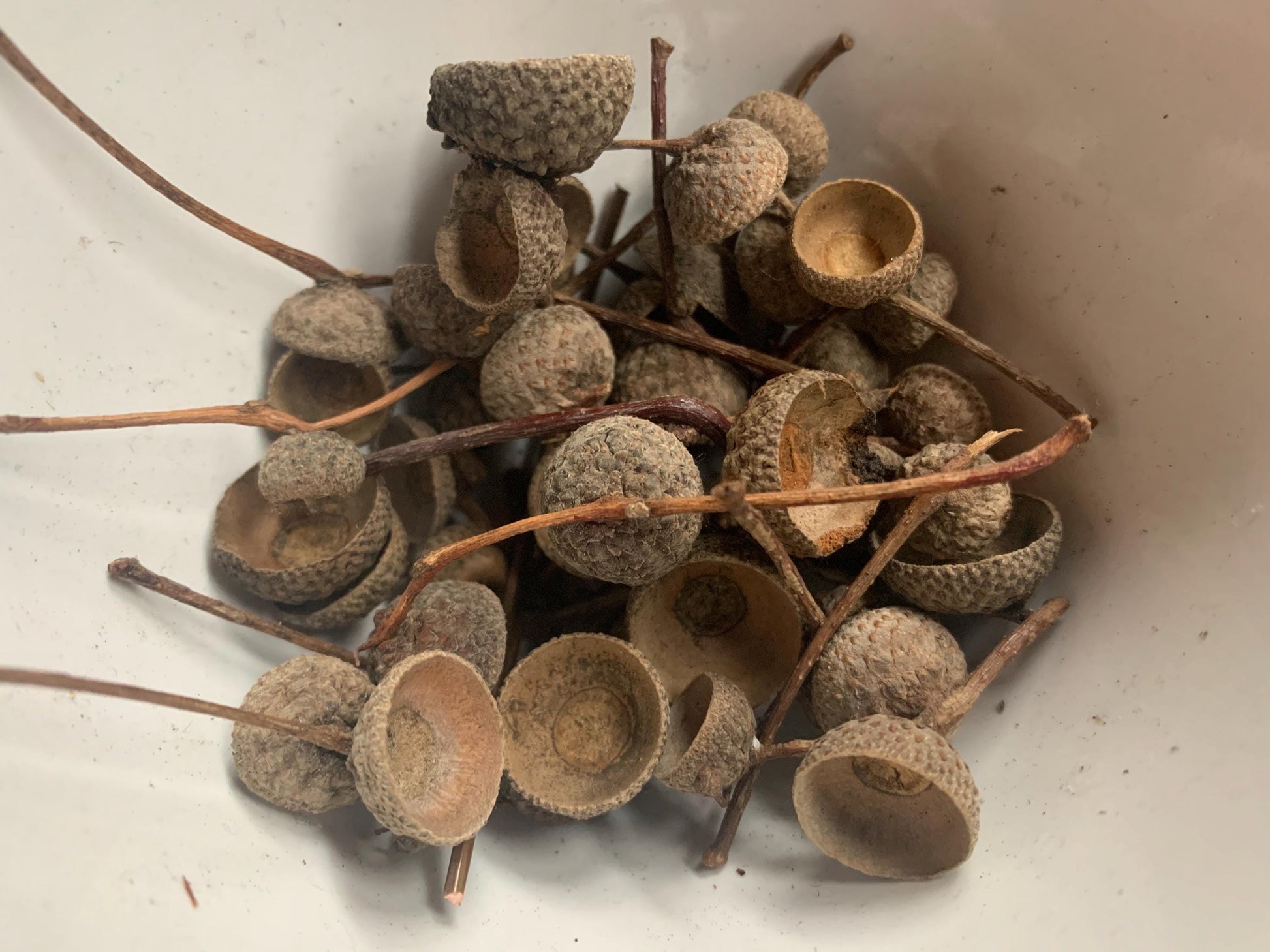Handmade acorn earrings. Gift for gardener, made from real acorns, recycled copper and vintage beads. Eco friendly jewellery. Ethically made