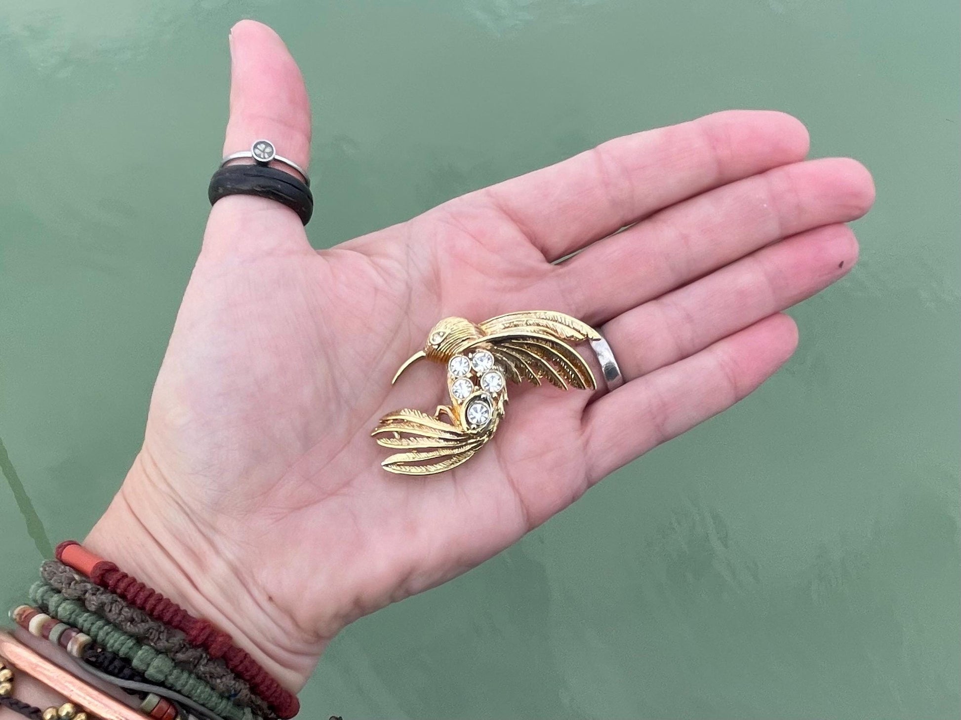 Hummingbird brooch, vintage jewellery, retro jewellery, unusual jewellery, bird brooch, eco friendly gifts for her, ethical jewellery