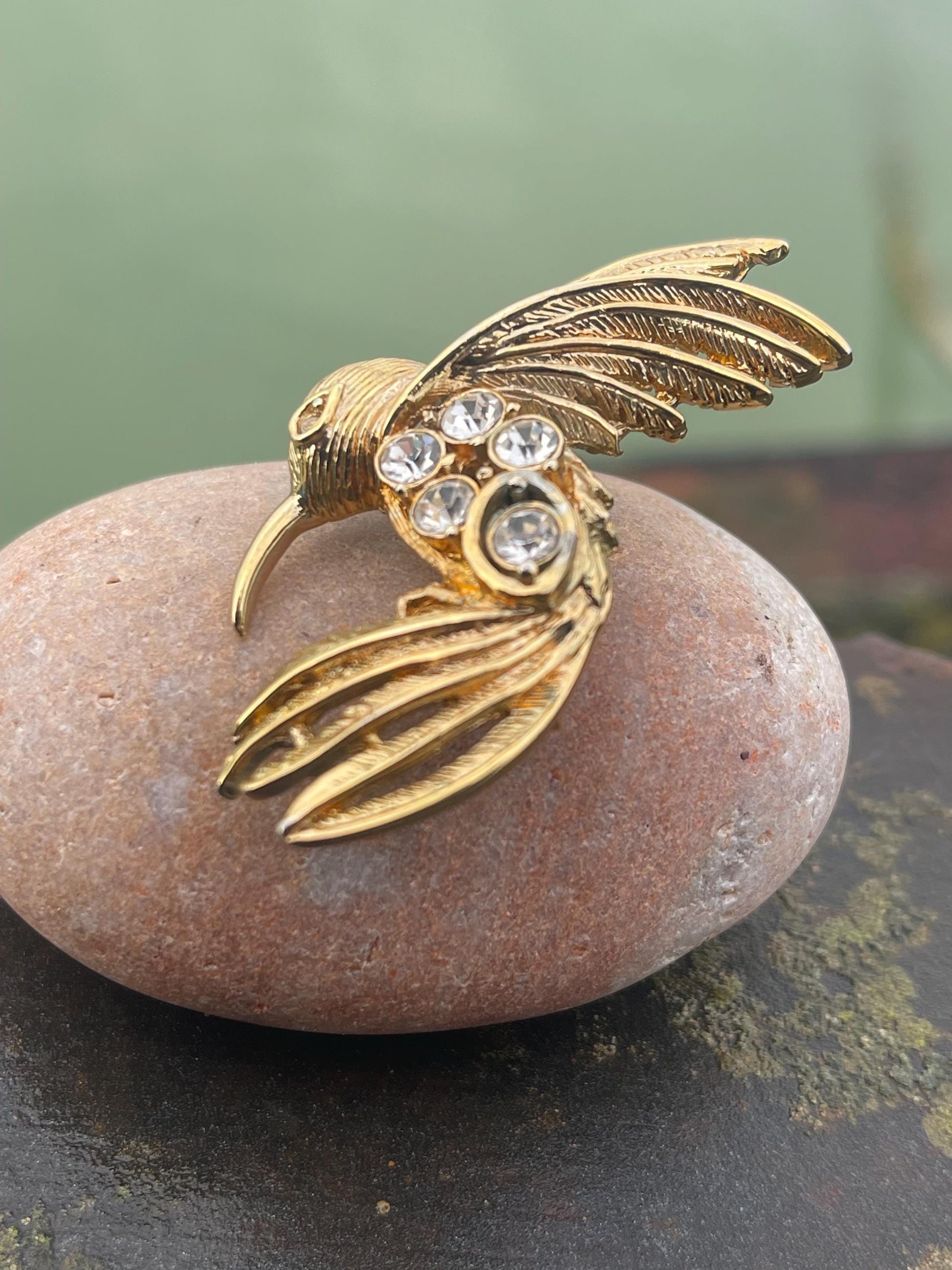 This is a very beautiful pre-loved hummingbird brooch, a restored piece that shines beautifully in the light.