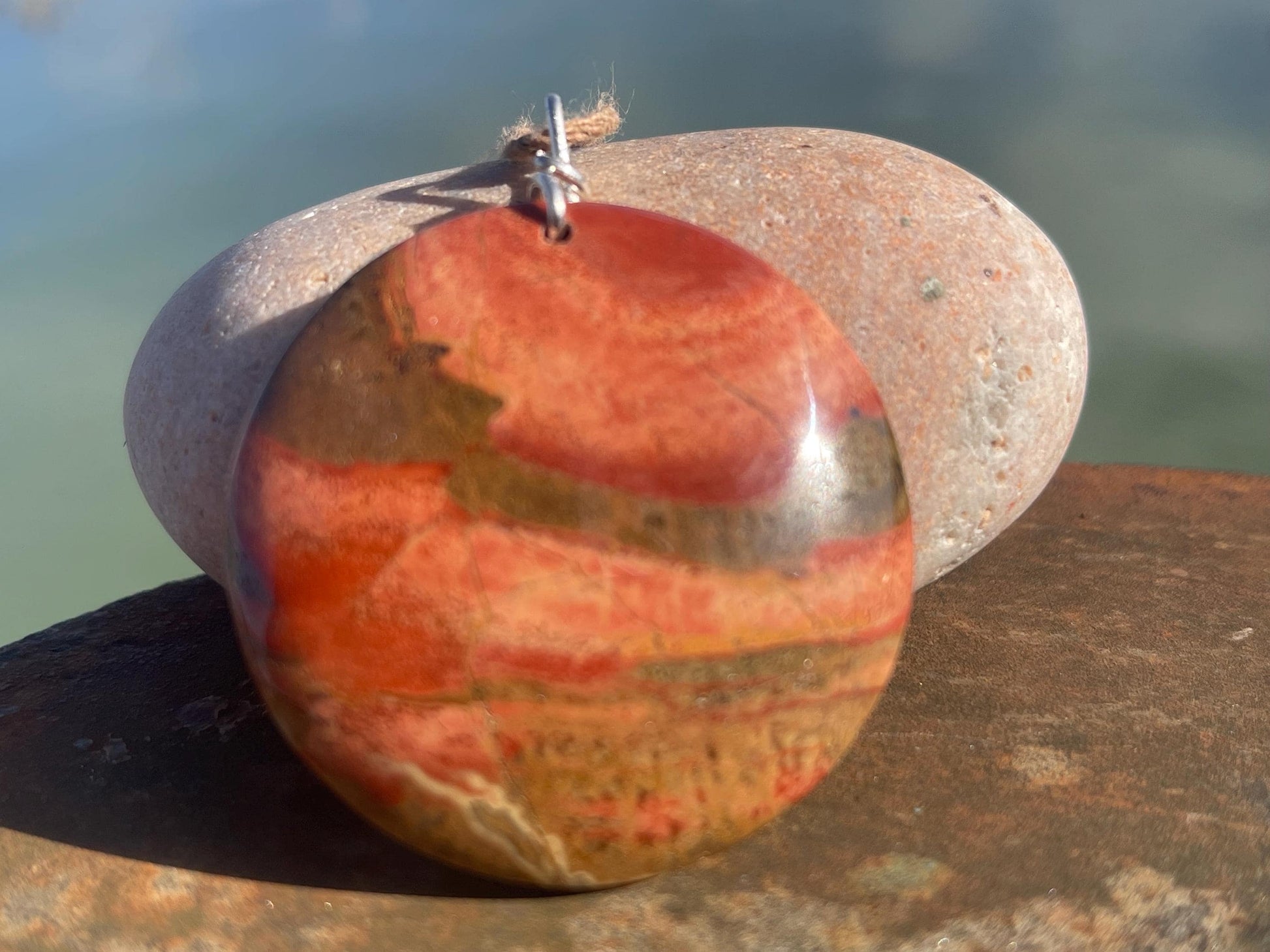 Picasso jasper gemstone pendant. Ethical jewellery, orange gemstone necklace. Stunning unique jewellery. Unique gifts. Unique necklaces.