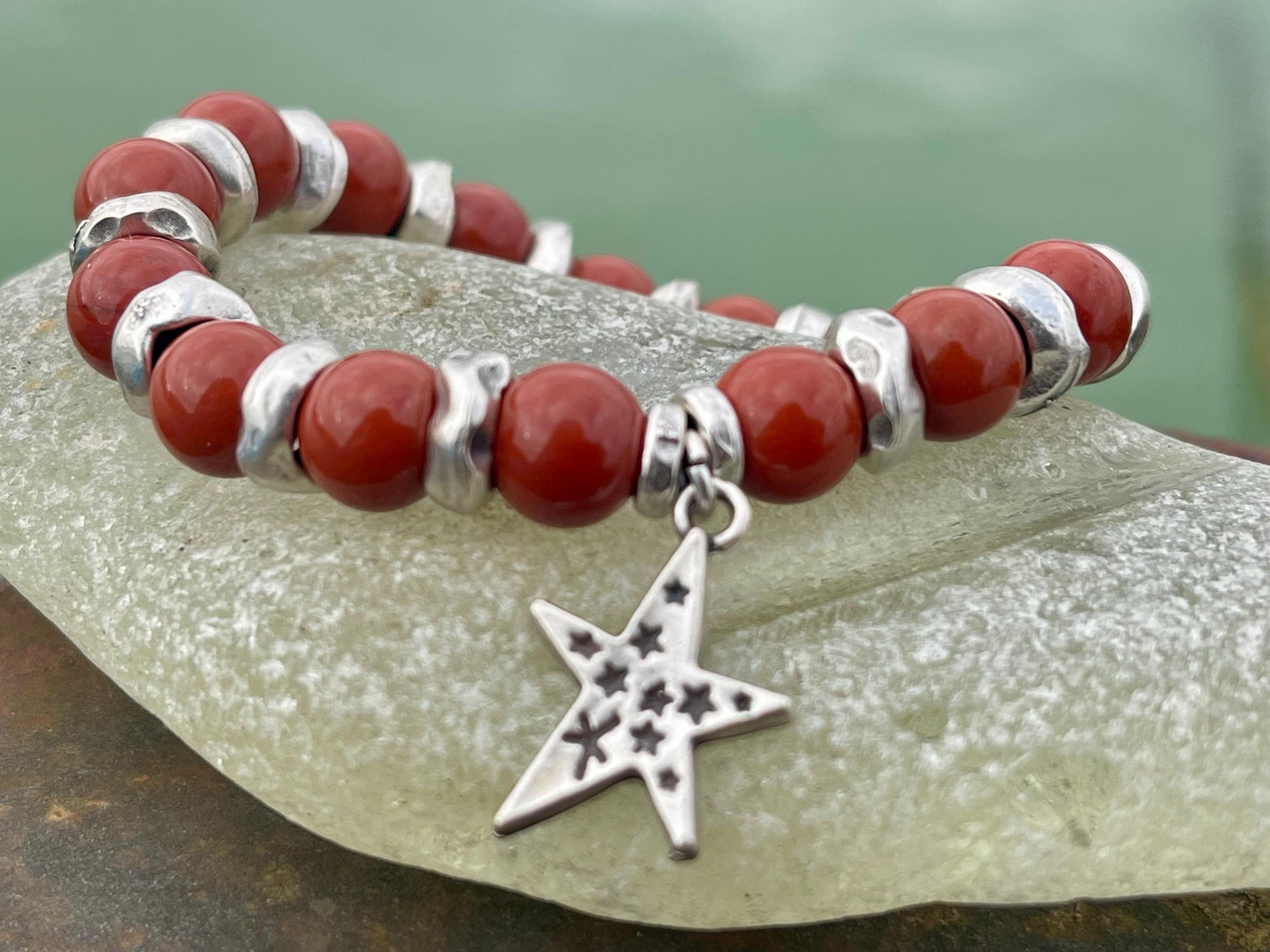 Red jasper bracelet, red jewellery, boho bracelet, Hippy bracelet, gift for her, red bracelet, handmade bracelet, Christmas star bracelet
