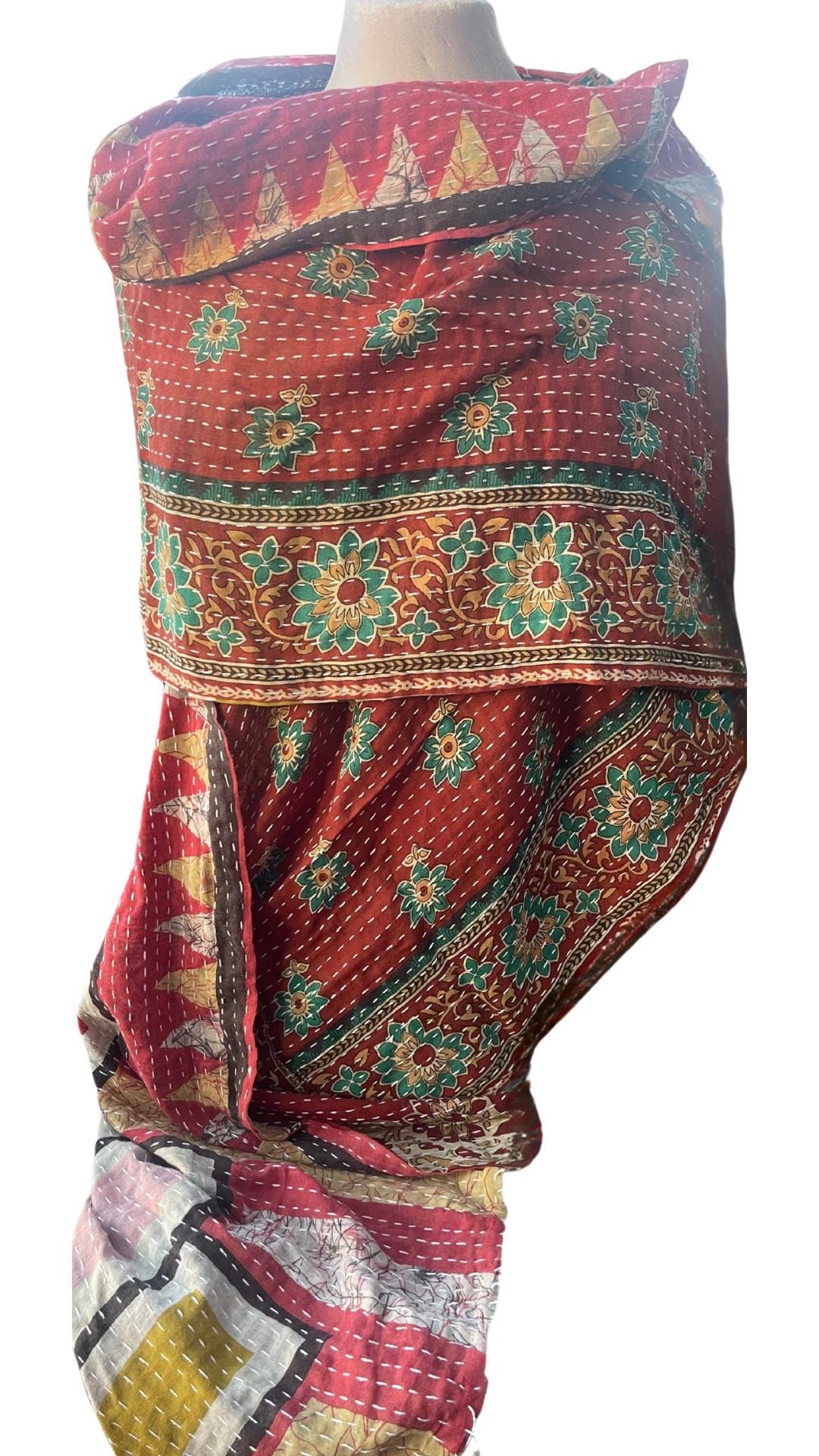These scarves/wraps are made from vintage cotton and are lovely and soft. Lots of material to throw around your shoulders or wear around your neck.76 inches (193 cms) in length and 18 inches (46 cms) in depth.