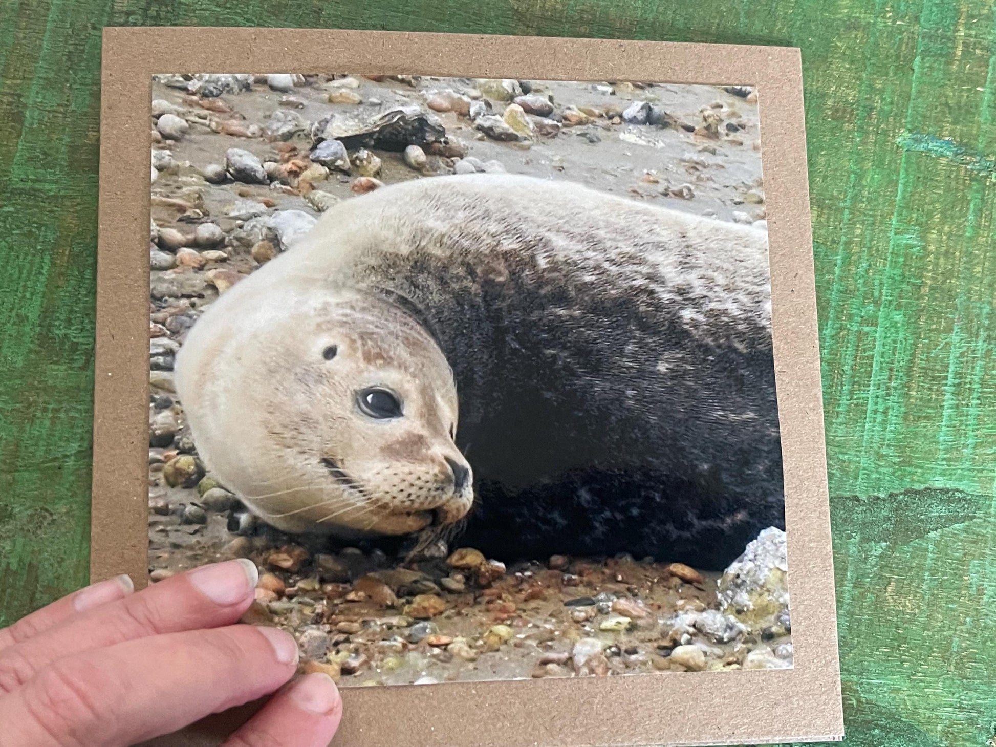 Seal card. Get well soon card, recycled card, birthday card, Eco friendly card. Handmade card. Sympathy card, thank you card, beach card
