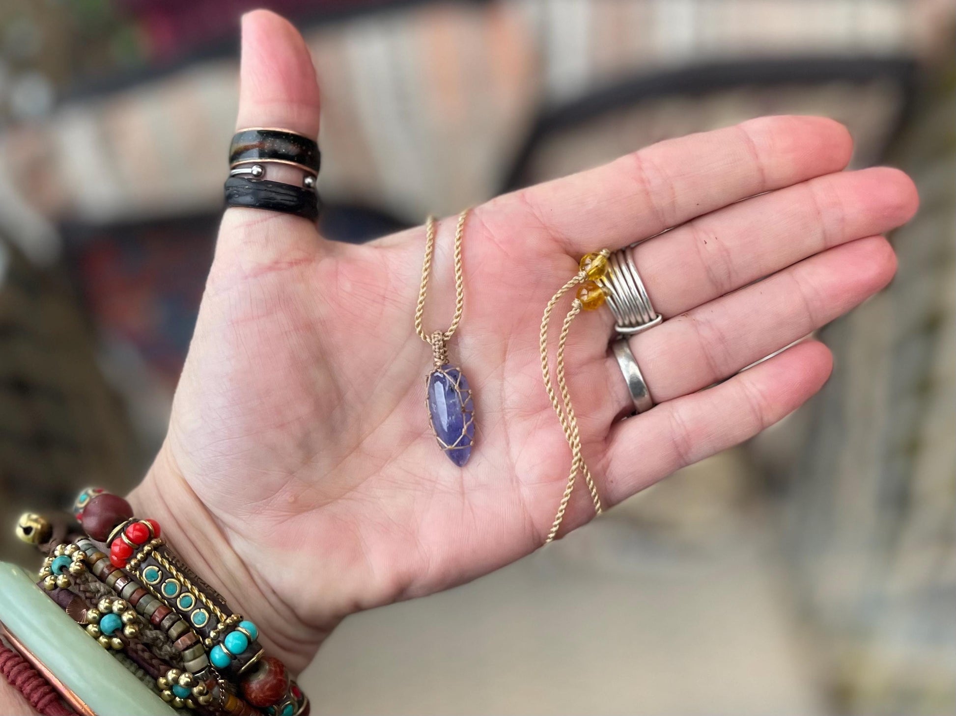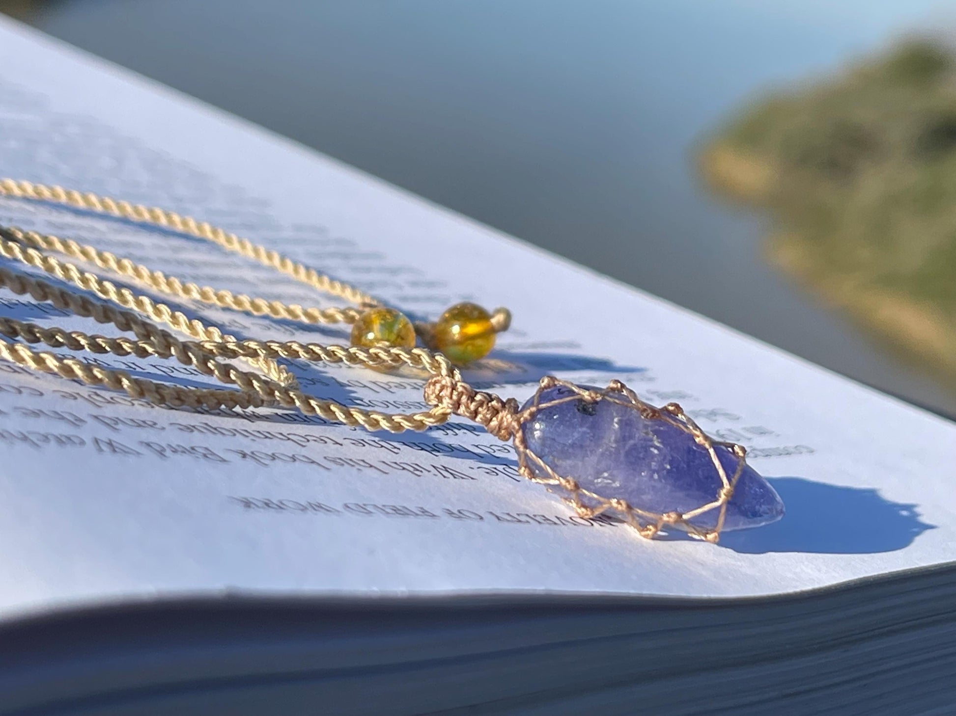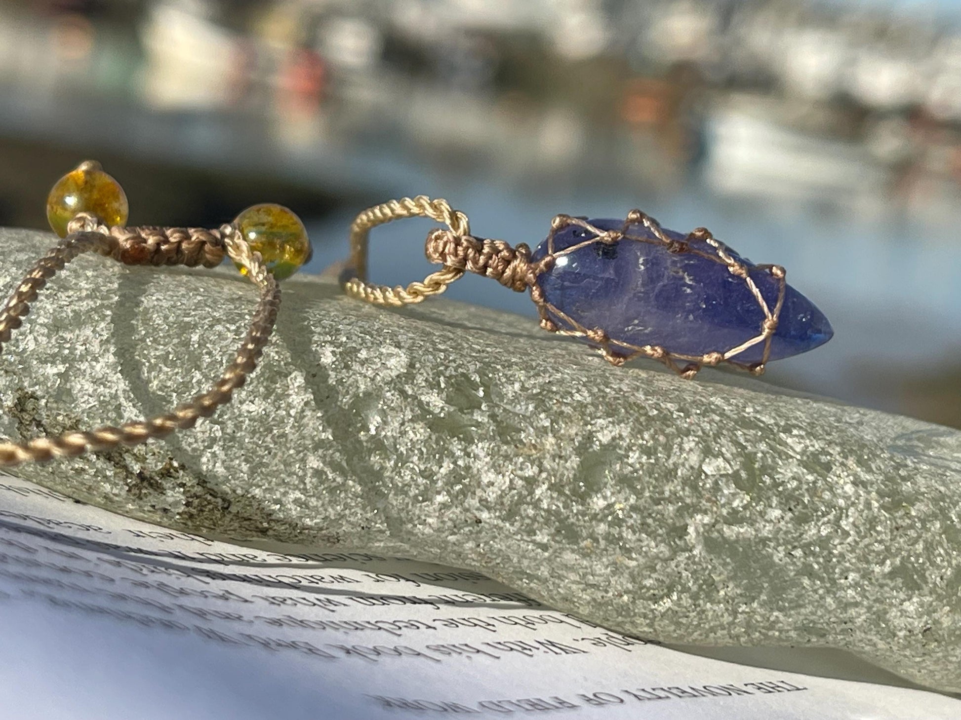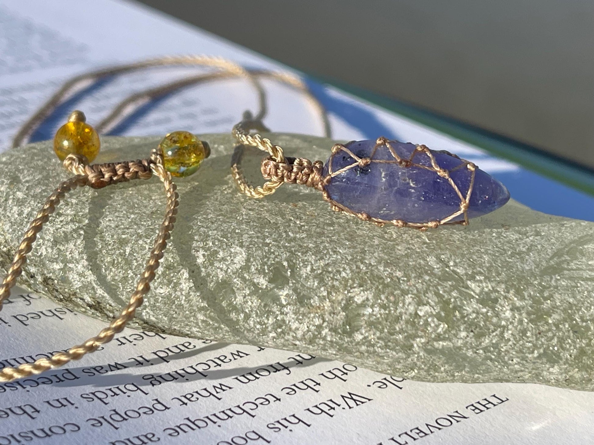 This is a beautiful and unique tanzanite necklace, macrame wrapped and fully adjustable.