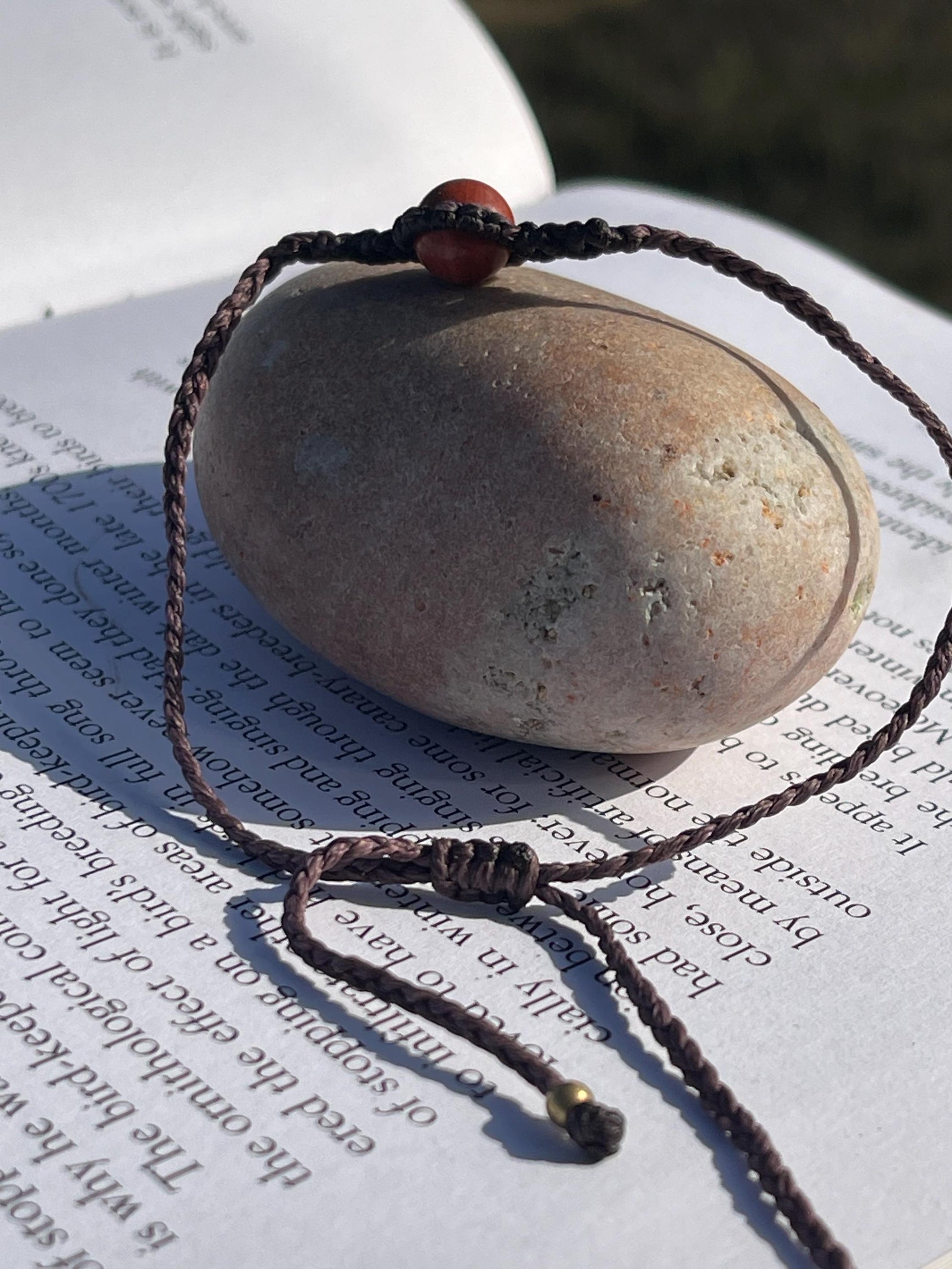 Natural jasper gemstone. A truly unique piece, macrame wrapped and adjustable, so you can tie at your preferred length to suit your wrist size.